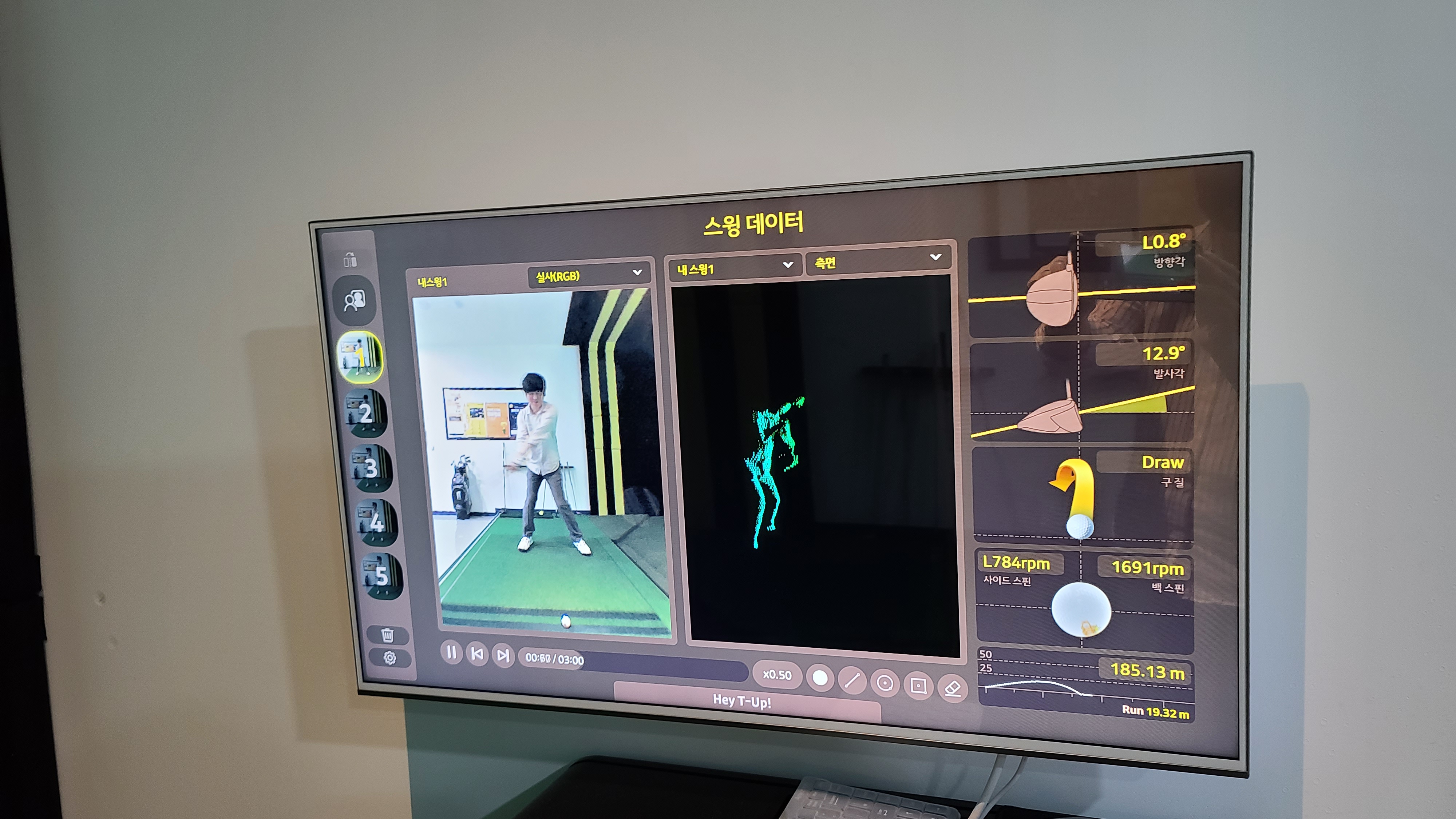 자세히 살펴보니 방향각과 발사각, 구질, 스핀 그리고 비거리까지 복합적으로 보여주는 시스템입니다. 상당히 연습하기 좋은 데이터들을 보여주고 있는것이 인상적입니다.