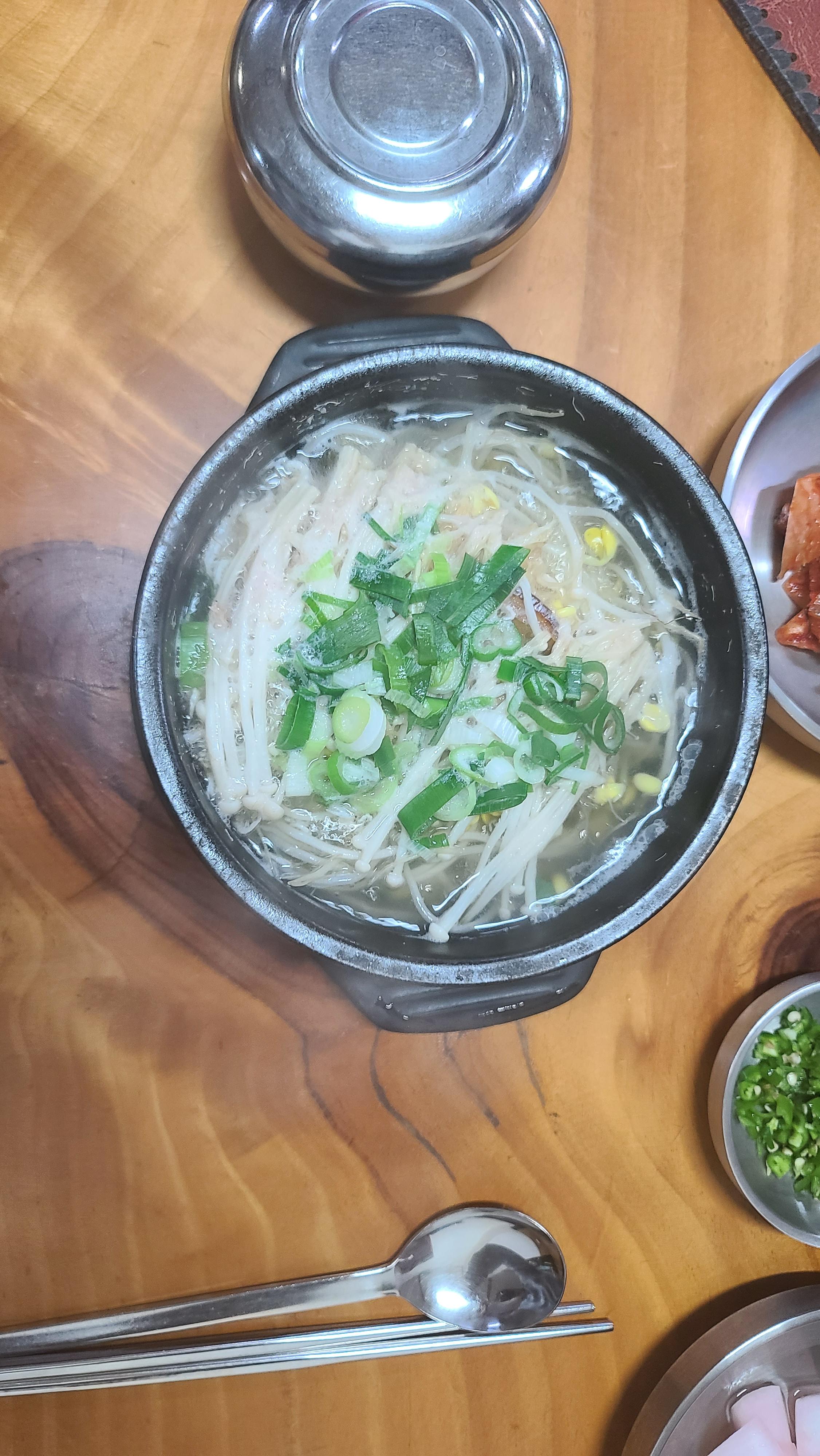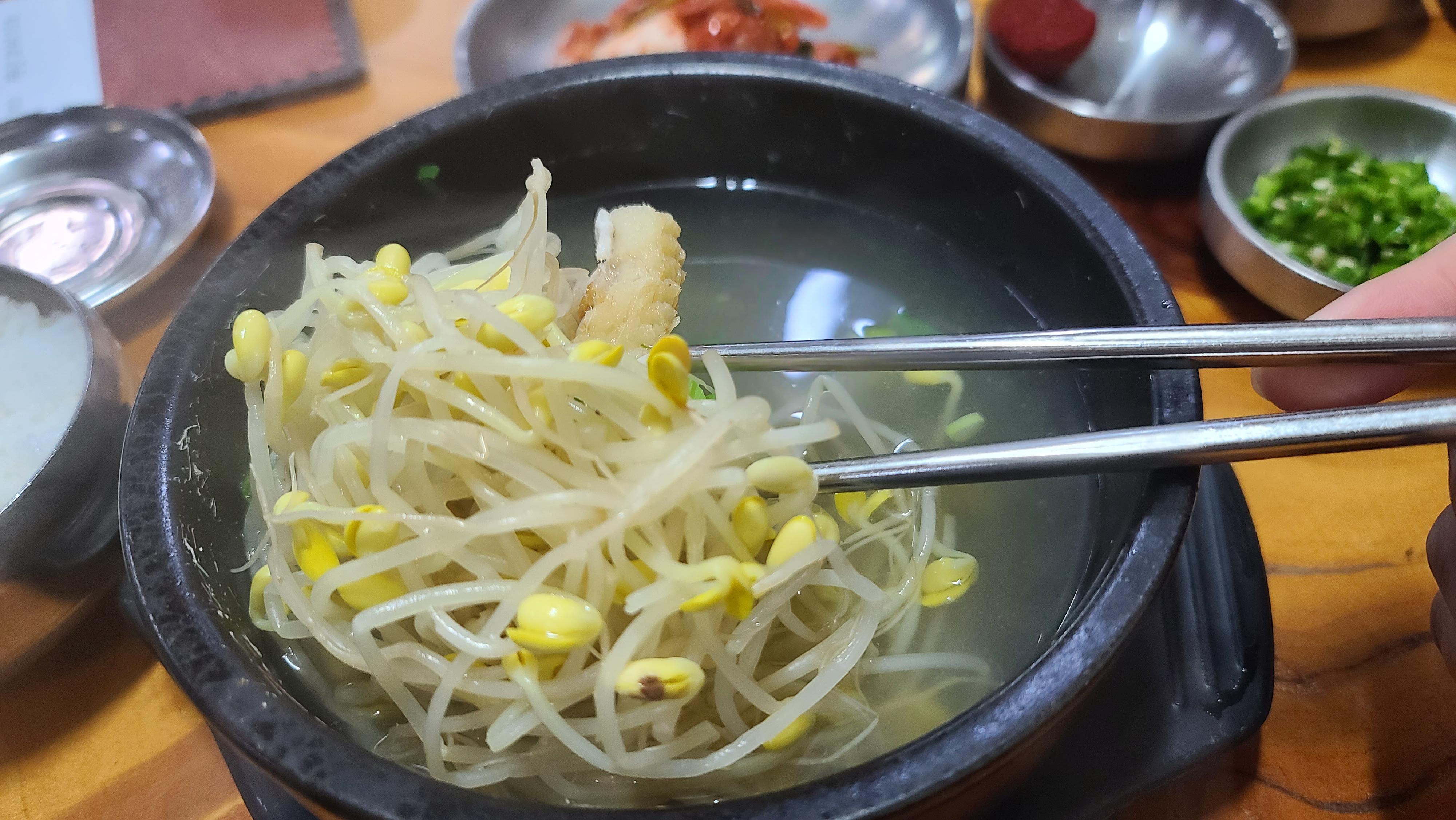 콩나물 해장국을 자세히 살펴보니 콩나물에 북어도 들어가있어 해장에 무척 좋아보이는 구성입니다. 맛있게 비우고 골프전에 속을 든든히 채웁니다.
