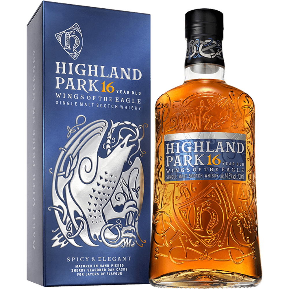 하이랜드파크 16년은 면세점 전용상품으로 면세점에서만 구매가 가능합니다. 윙즈 오브 더 이글 (독수리날개)라는 코드명을 가지고 있는 제품이며 피트향과 달콤한 초콜릿의 맛이 어우러지는 제품으로 인기가 많다.