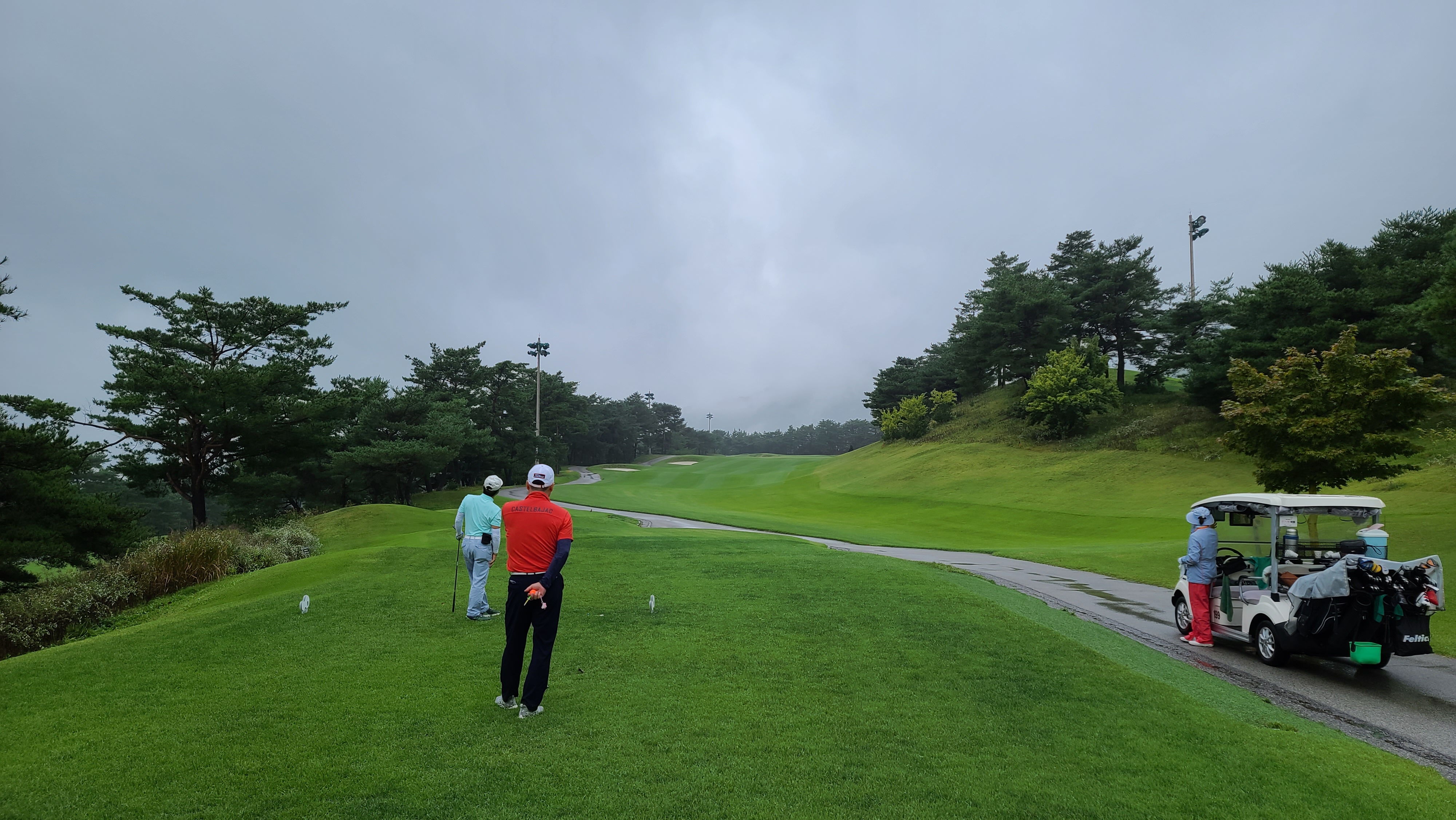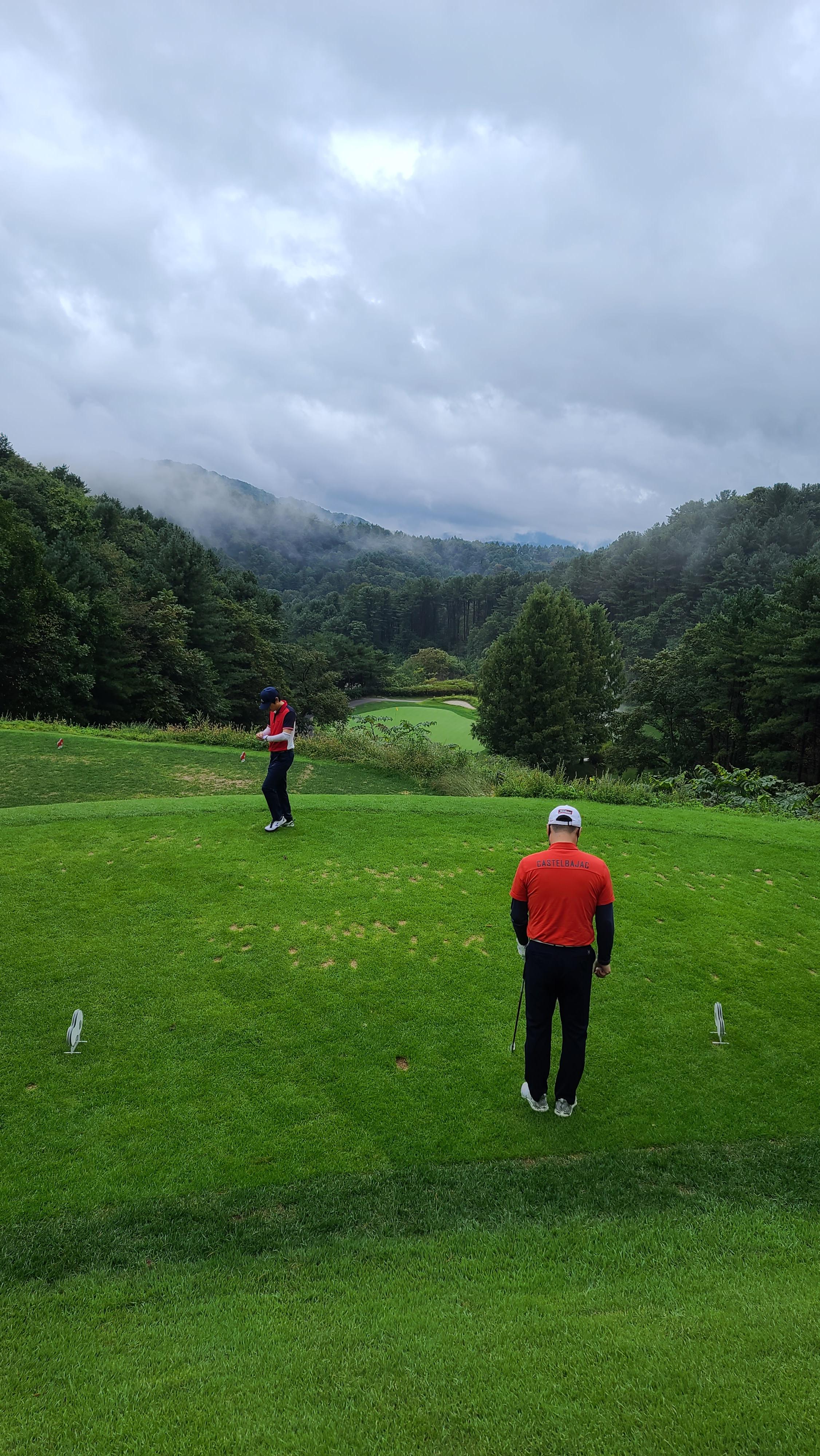 전반을 마무리하고 클럽하우스에서 잠시 휴식을 가집니다. 클럽하우스 뒤로 구름낀 산의 자태가 절경이 아닐수 없습니다.