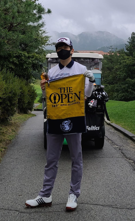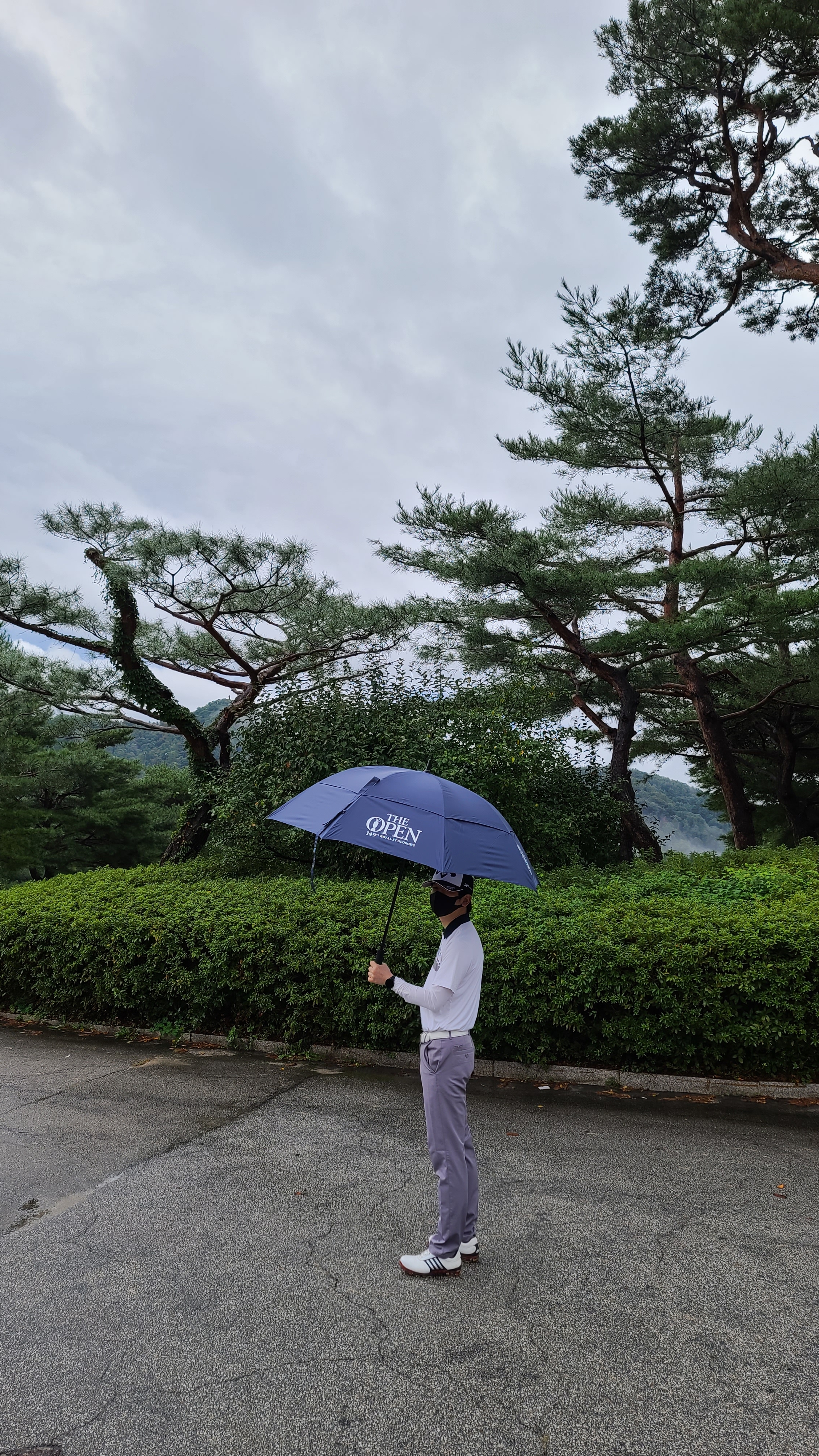 전반을 마치고 나니 비가 조금씩 부슬부슬 내리고 있습니다. 후반라운드를 위하여 골프우산을 세팅합니다. THE OPEN 골프우산은 THE OPEN공식스폰서인 로크로몬드 위스키 한정판을 구매하고 받은 선물입니다. PING, 타이틀리스트, 테일러메이드 같은 로고보다 THE OPEN이 박혀있으니 무언가 더 폼이나는 기분입니다.