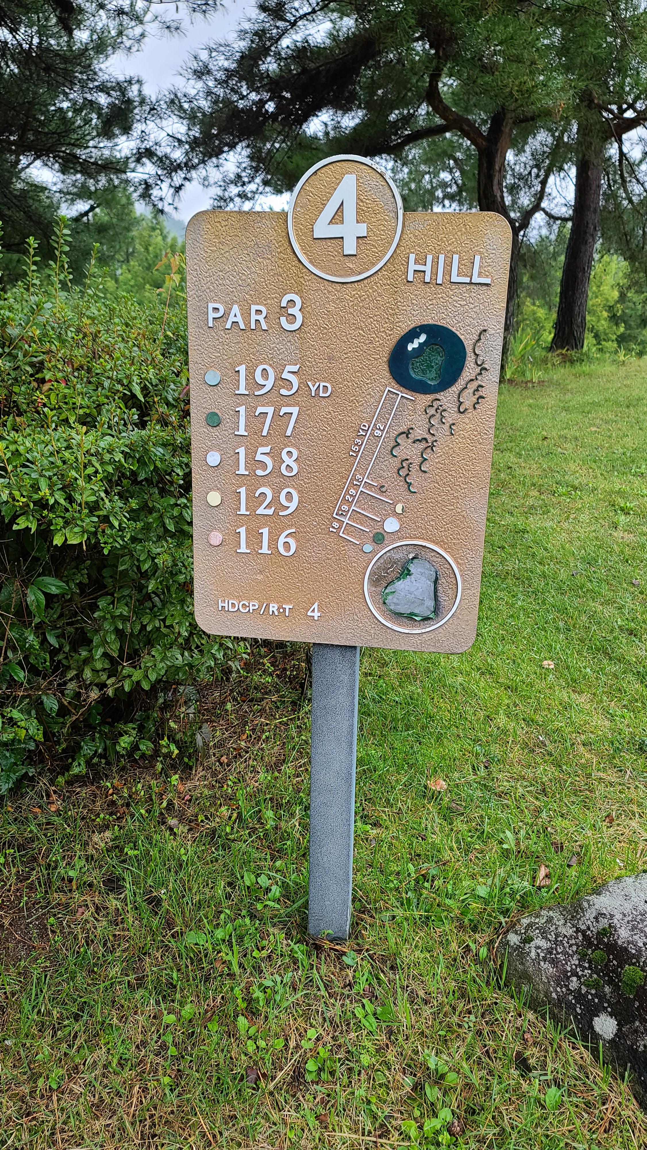 힐코스 4번 파3홀입니다. 숲으로 끊어져 있고 그린과 헤저드 사이의 여유가 별로 없기 때문에 런을 생각하기보다 높은 탄도로 제거리를 맞춰서 한번에 공략해야 합니다.