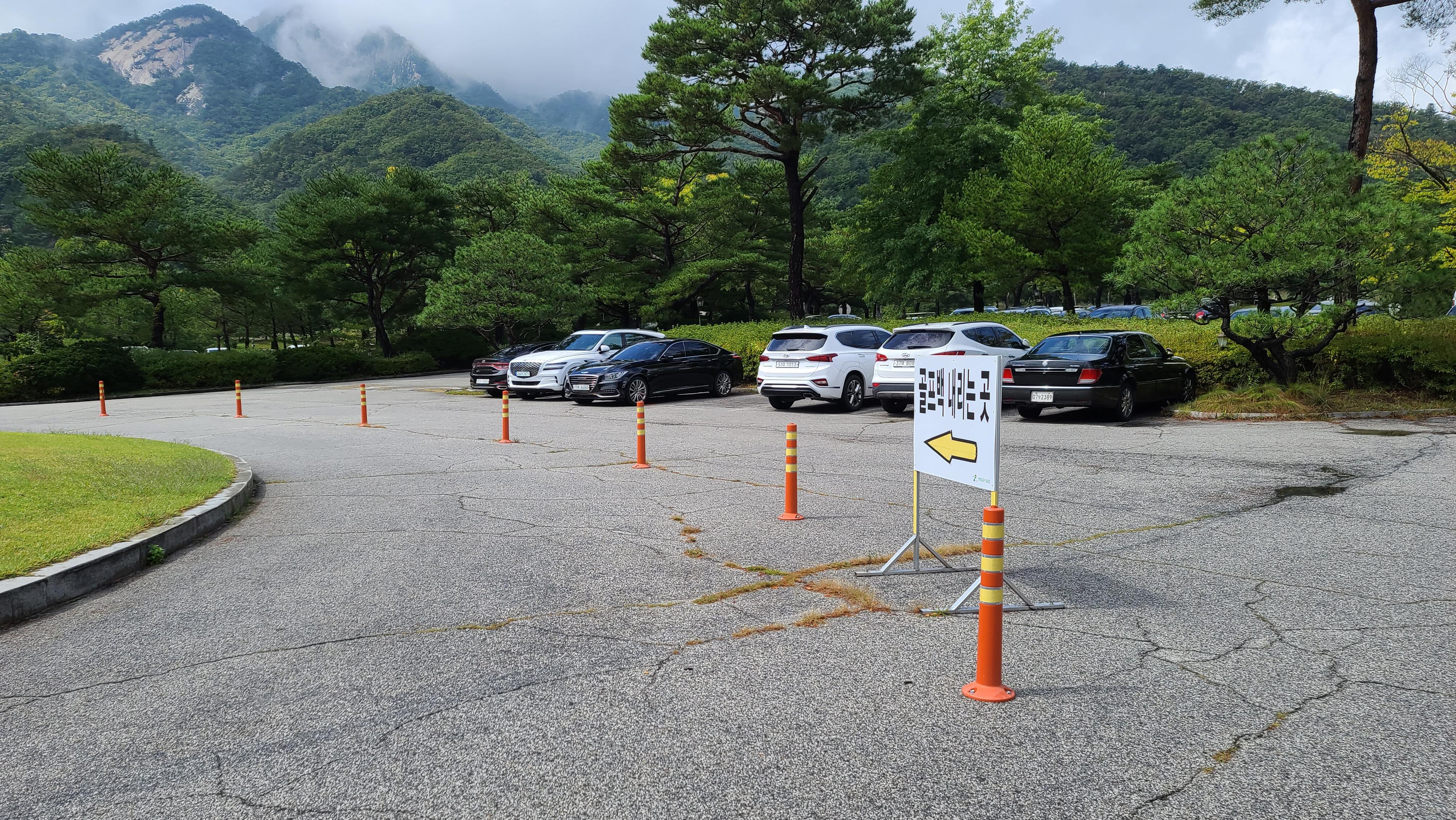 썬힐 컨트리클럽은 특이하게도 가방을 내려놓는 장소가 화살표 방향대로 지하로 내려가야 있습니다. 지하에서 가방을 내려놓고 주차후 지상의 클럽하우스로 이동하는 방식입니다.