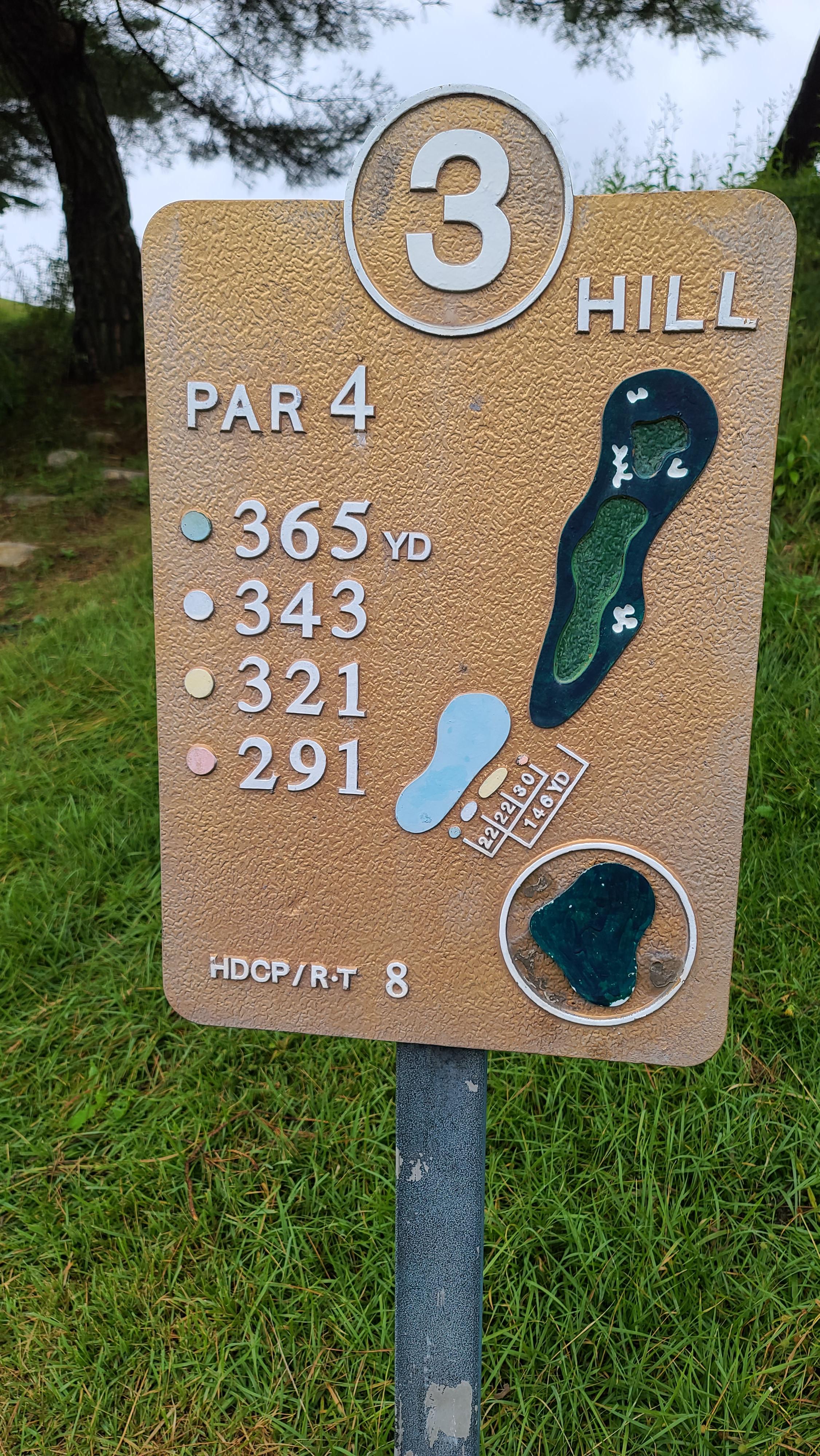 3번홀 파4입니다. 프론트티 271m 거리는 길지 않지만 오르막으로 설계되어 있어 티샷후 거리를 길게 보셔야 안정적으로 플레이 할 수 있는 홀입니다. 왼쪽은 낭떠러지 오른쪽은 법면으로 오른쪽 공략이 유리한 홀입니다.