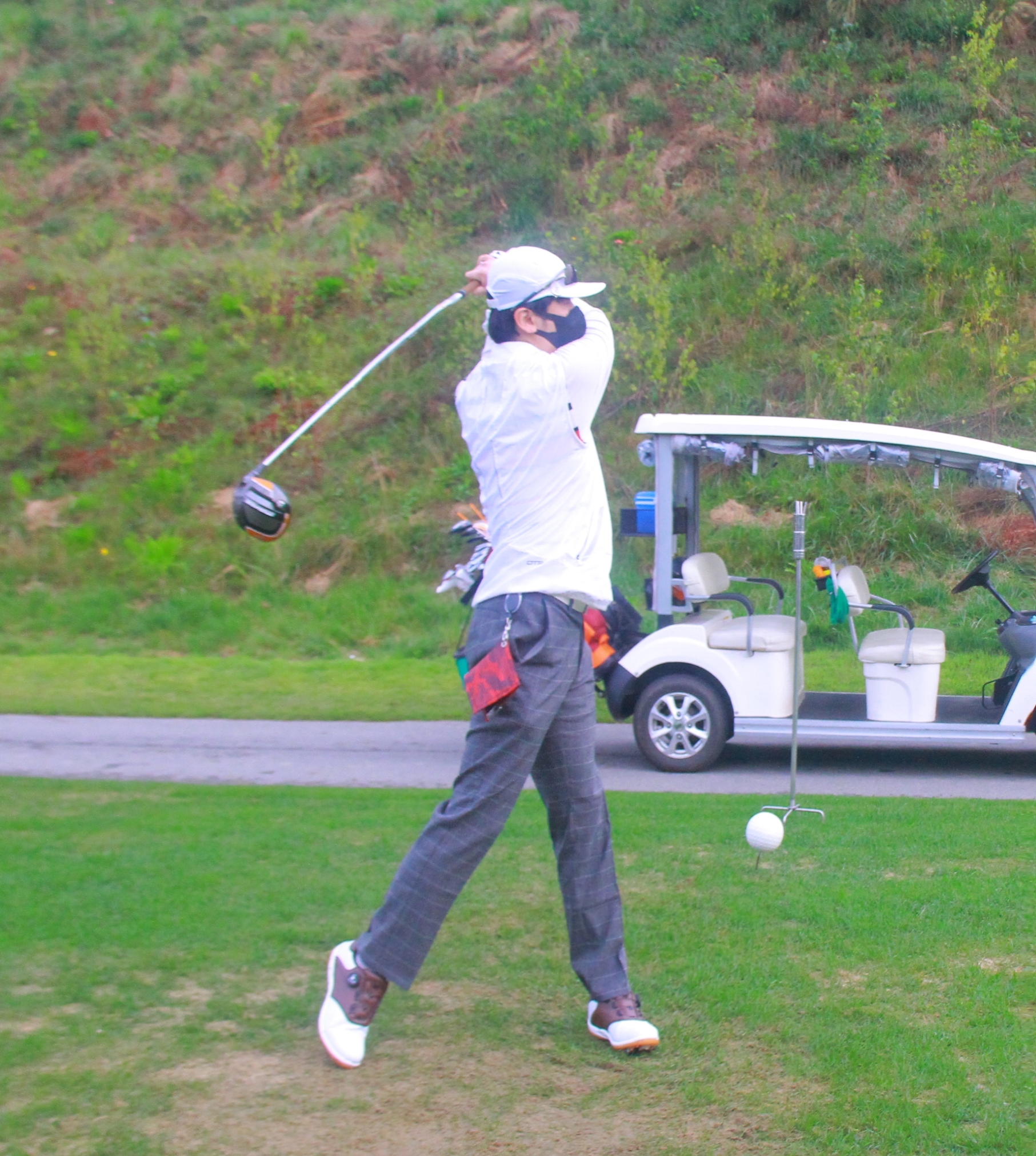 첫홀이니 가벼운 마음으로 스윙을 가져가며 페어웨이에 안착시킵니다. 긴장이 될수록 다른생각 할 필요없이 몸이 일어나지 않고 공만 끝까지 보겠다는 마음만 가지면 편안히 페이스를 유지할 수 있습니다.