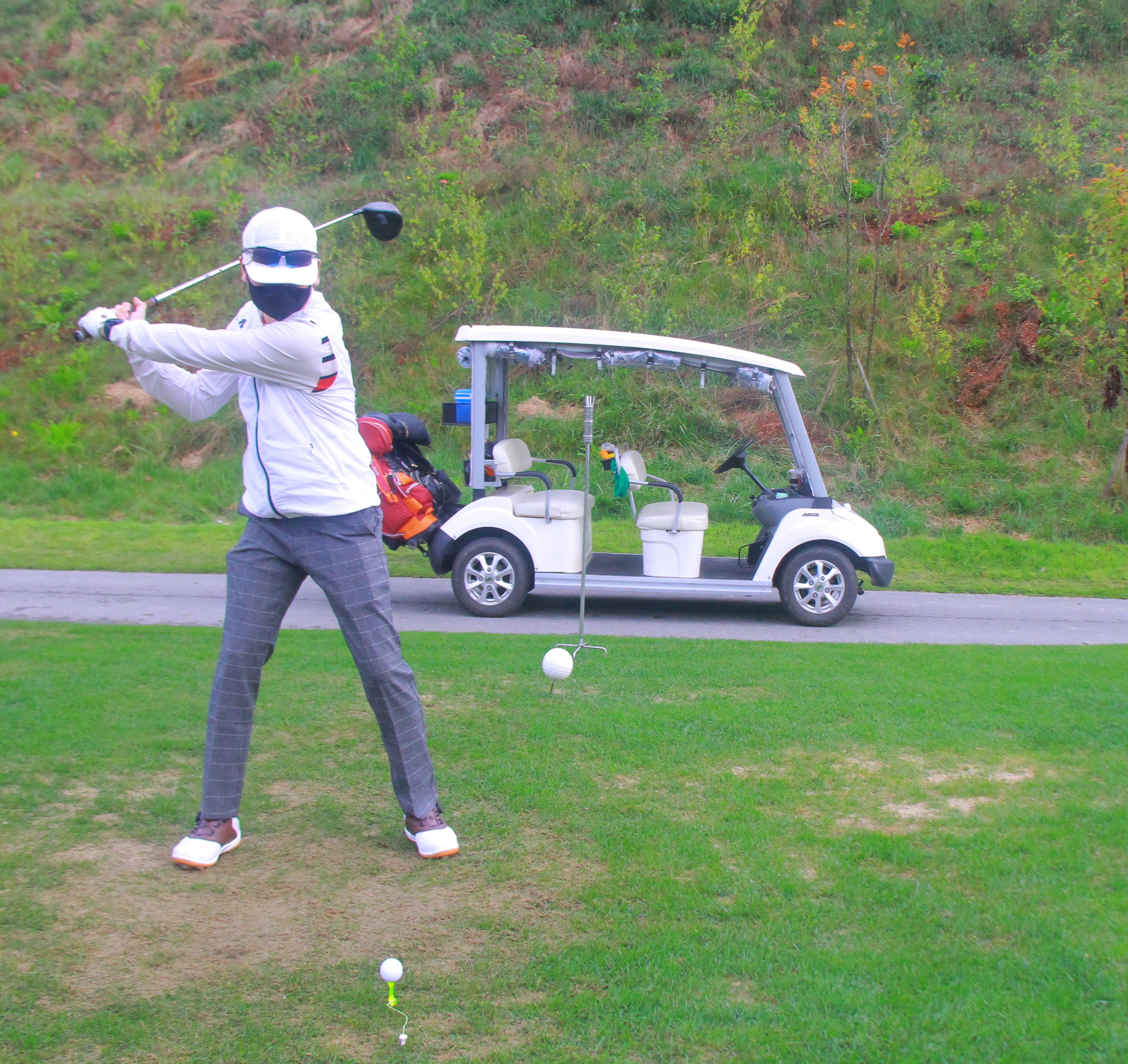 최고에 풍경에서 골프전용 타월을 들고 사진을 찍으며 골프대회와 같은 분위기를 연출, 신중하게 한타한타 임하겠다는 마음을 먹어봅니다.