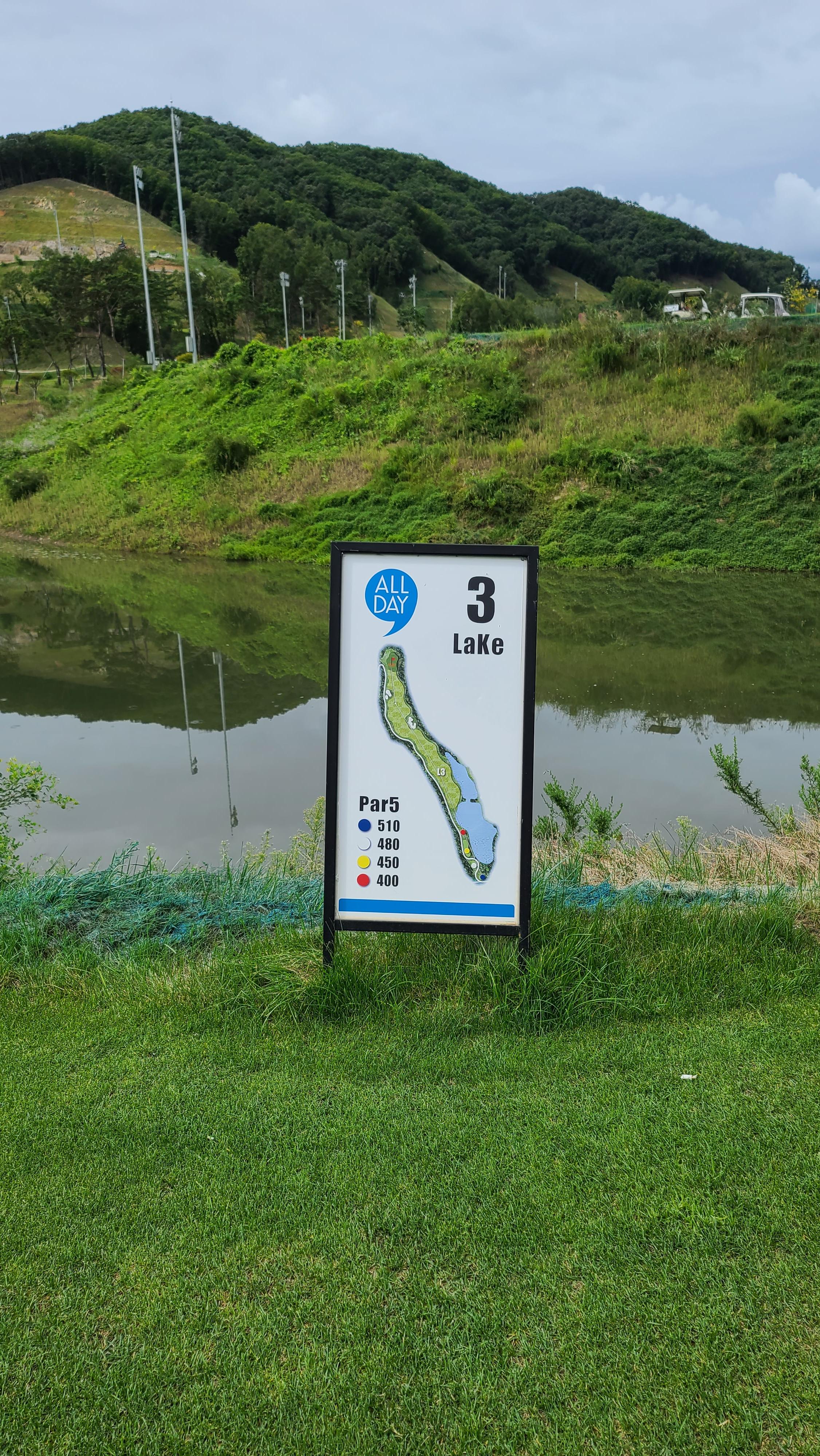 올데이CC는 새로생긴 골프장으로 호기심을 가지고 방문하였습니다. 어려운코스를 만들고자 하였으나 너무 제약이 많아 공략을 할수 없게 만들고 어려워서 타구사고가 나기 쉽지만 안전장치는 없는 게다가 잔디는 아직 자리잡지 못하여 진흙탕이라고 표현할 수 있는 컨디션을 보여줍니다. 스코어를 중요시하는 골퍼분들은 매우 스트레스를 받을 수 있는 코스이므로 플레이에 각별한 주의를 요하고 좋은 공략되시길 바랍니다.