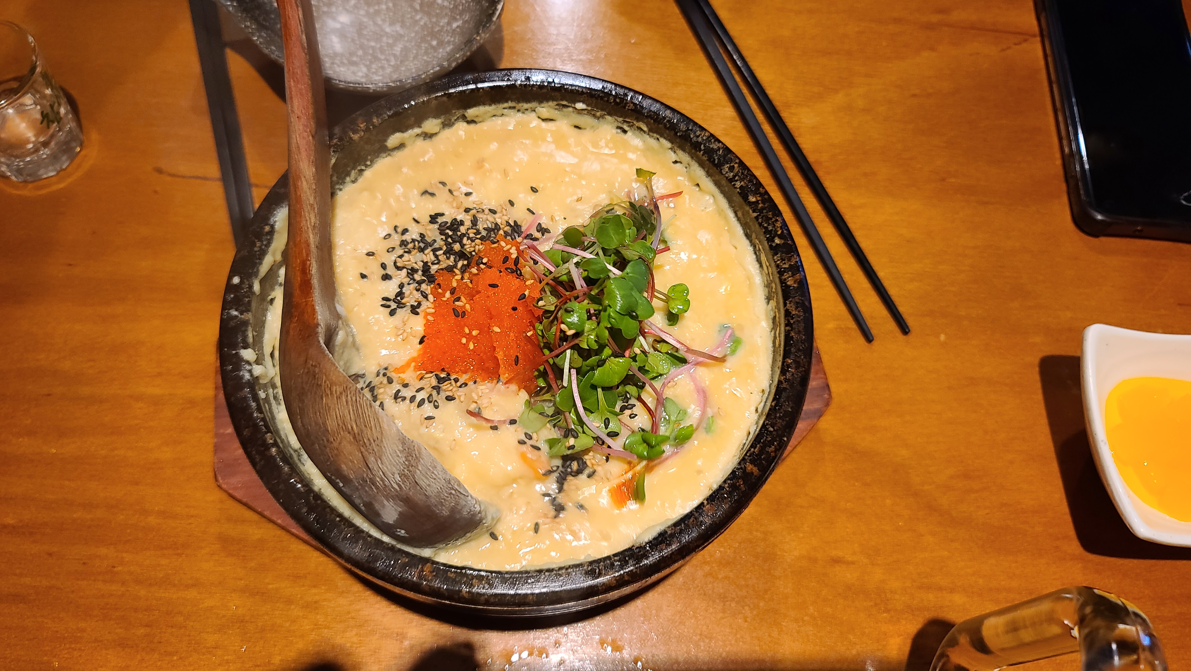 잠시 기다리자 황제 계란탕이 나왔습니다. 계란찜을 연상케하는 비주얼에 날치알과 무순이 올라가있는 비교적 단촐한 구성입니다.