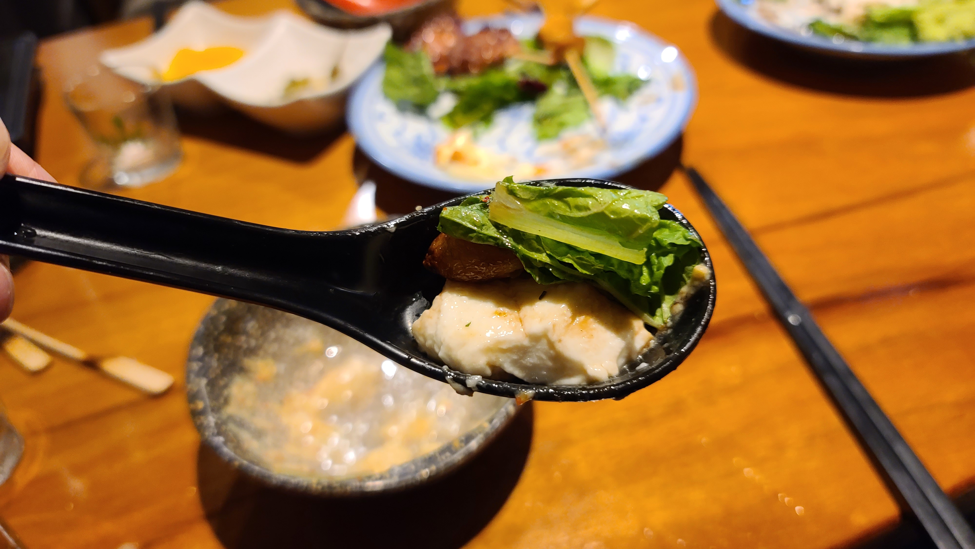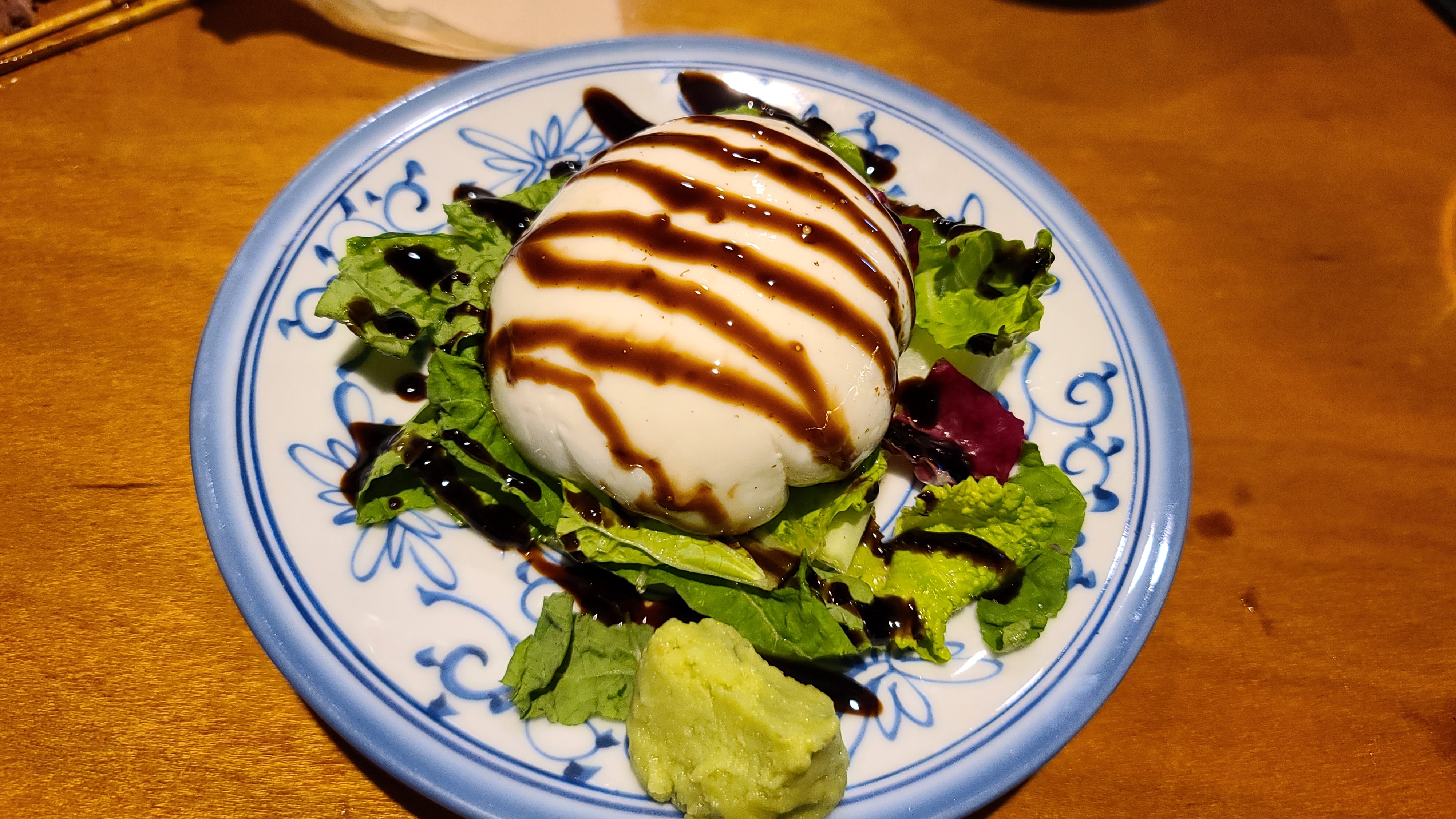 뒤이어 나온 모찌리도후를 먹어봅니다. 치즈를 숙성시킨 맛이 일품인 모찌리 도후를 한입 베어물자 잠시 말하는 것을 잊을정도로 맛에 몰두하게 됩니다. 식감과 숙성 소스 모든것이 어우러진 최고의 작품같습니다.
