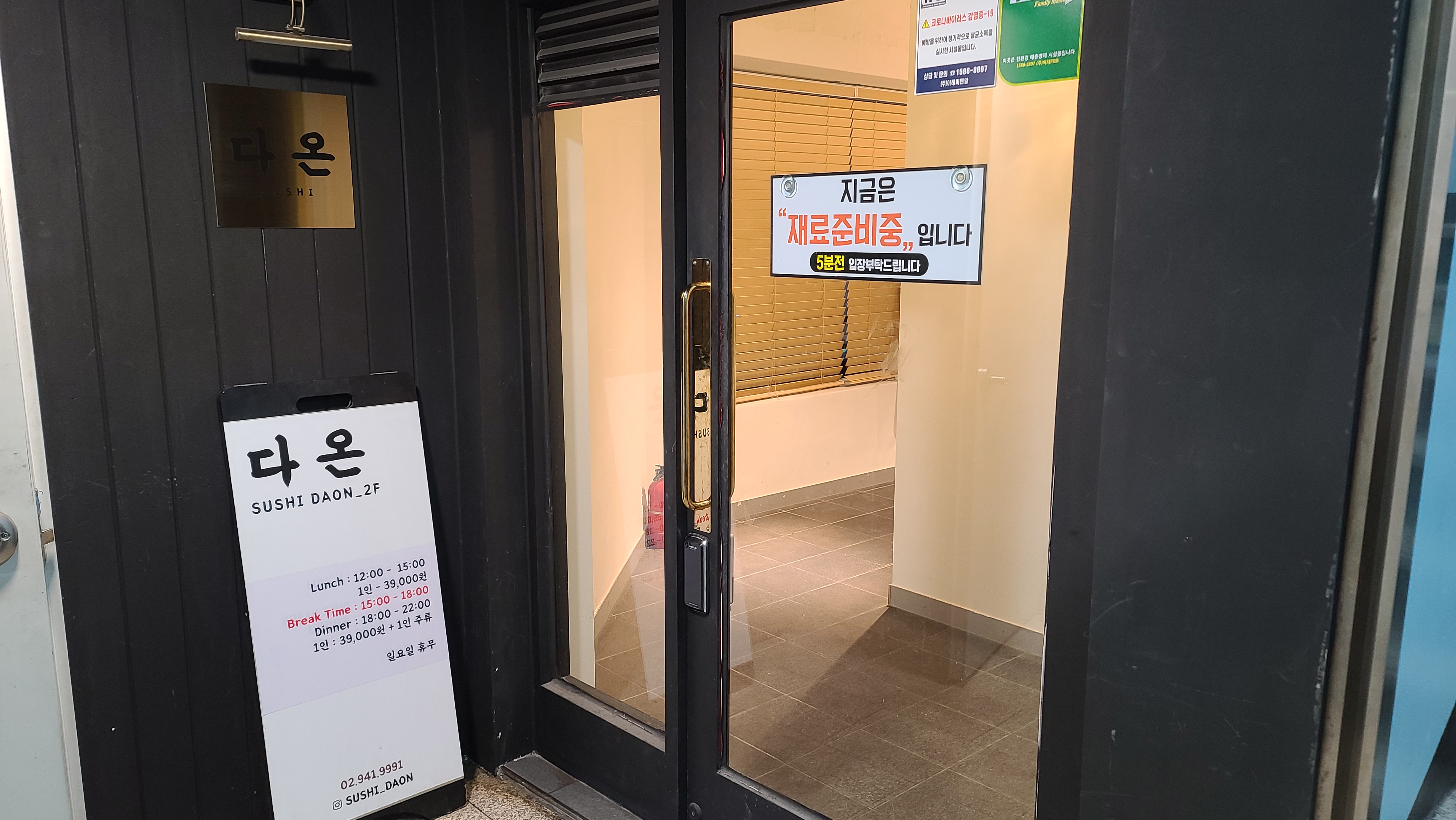 도착을 해서 가게앞을 보니 5분전 입장이 가능하다는 표시가 걸려있습니다. 여유있게 기다려보기로 합니다.