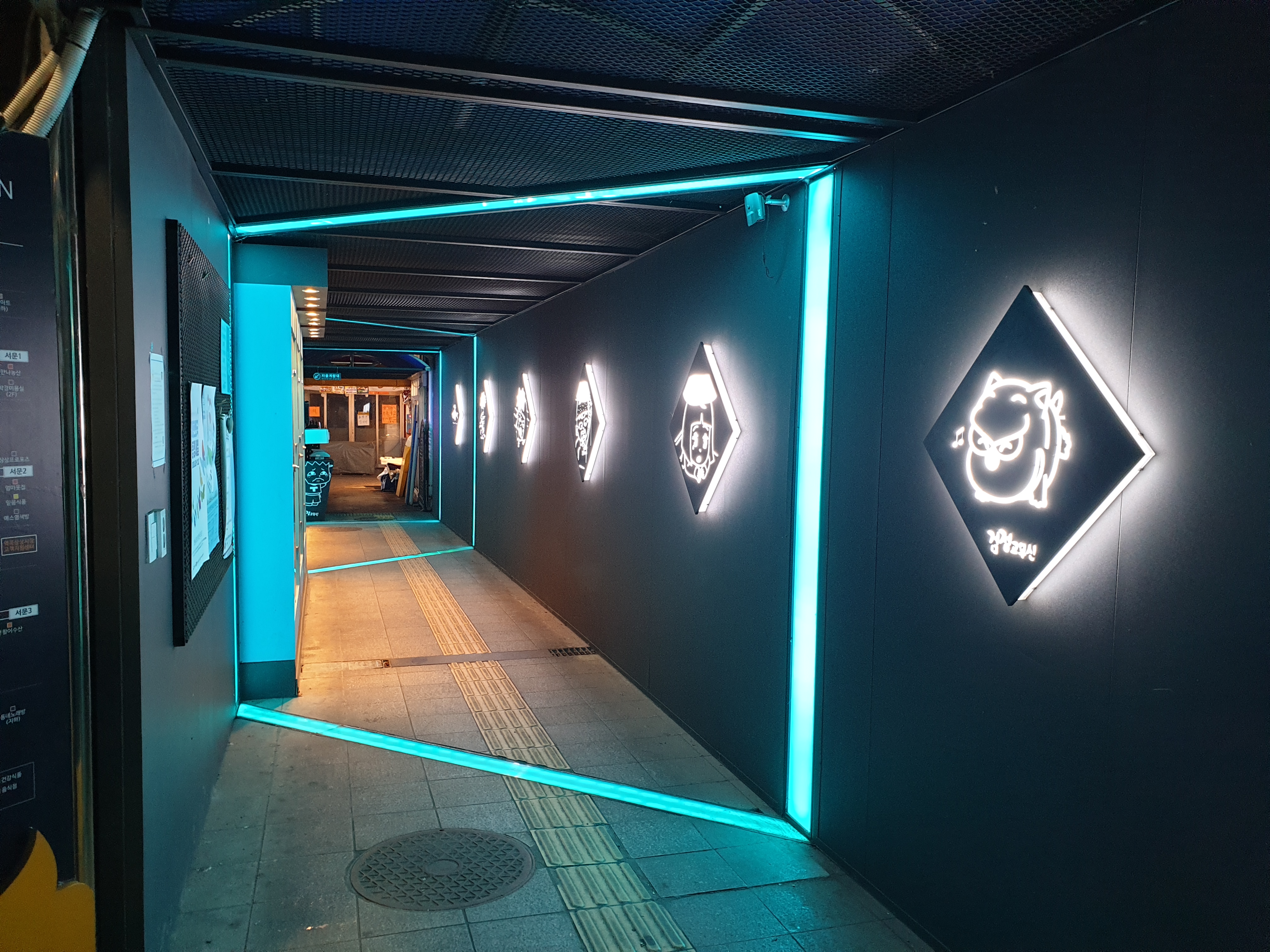 전통시장 답지 않게 들어가는 입구도 현대적인 LED와 캐릭터들로 사람들이 보는재미도 느끼고 사진도 찍을수 있게 꾸며놨습니다. 입구에서부터 상당히 이채롭습니다.