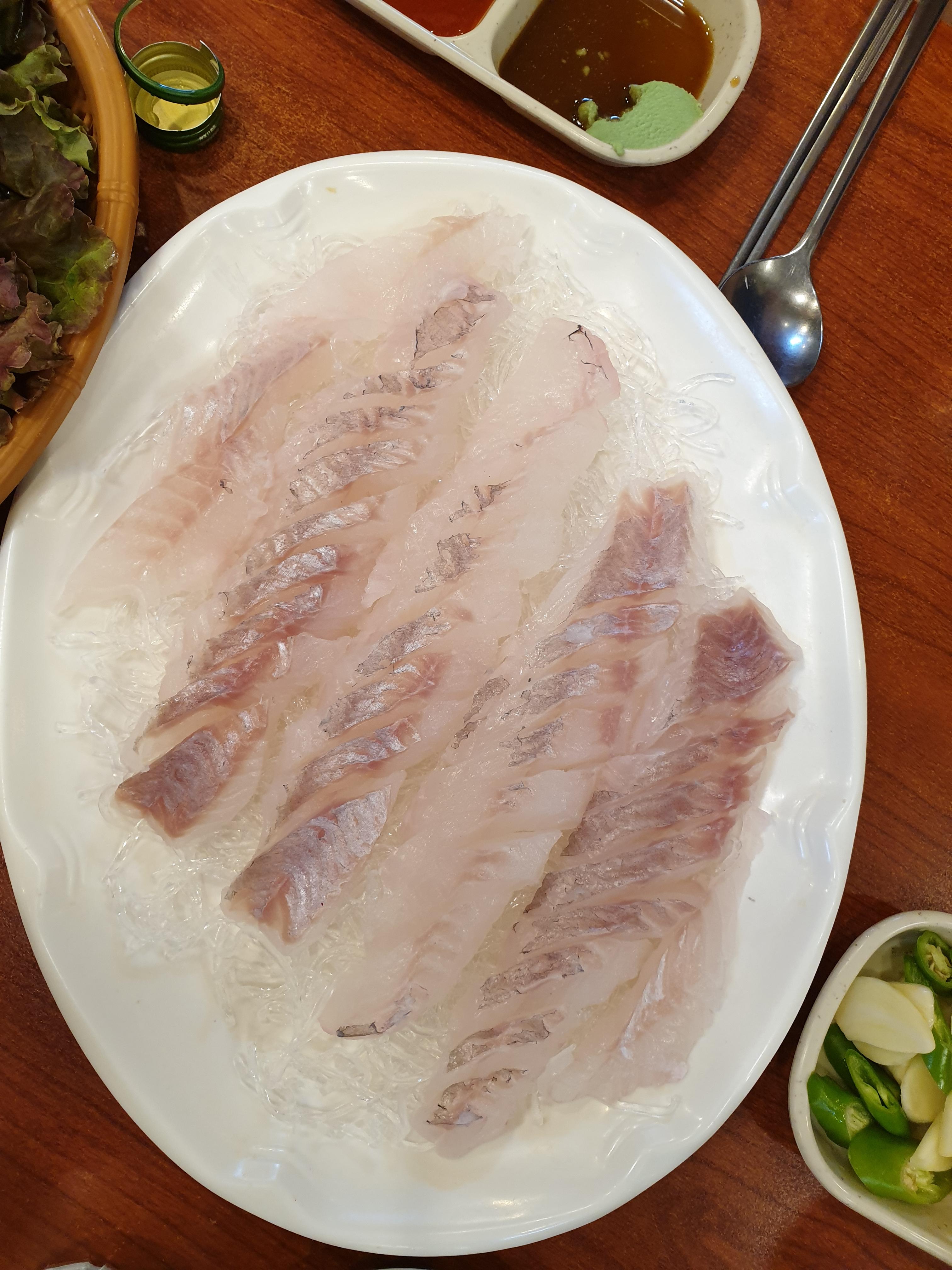 조금 기다리자 우럭자연산 회가 나왔습니다. 2명이라 2마리를 시켰는데 제법 양이 되는것 같습니다.