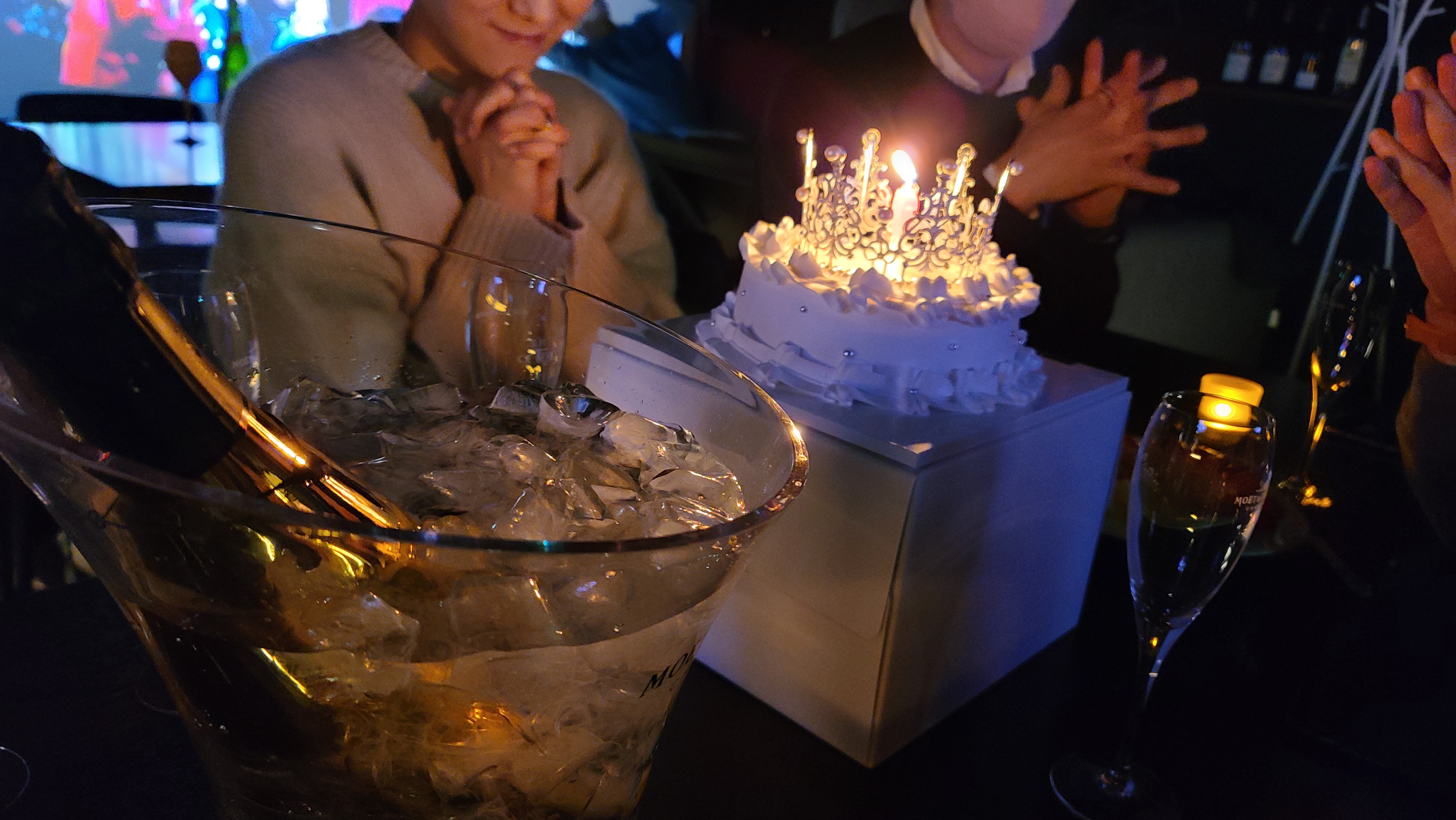 분위기가 고조되었을때 케익에 불을켜고 축하를 해봅니다. 샴페인과 왕관케익 무언가 매우 잘 어울리는 조합이 아닐수 없습니다.