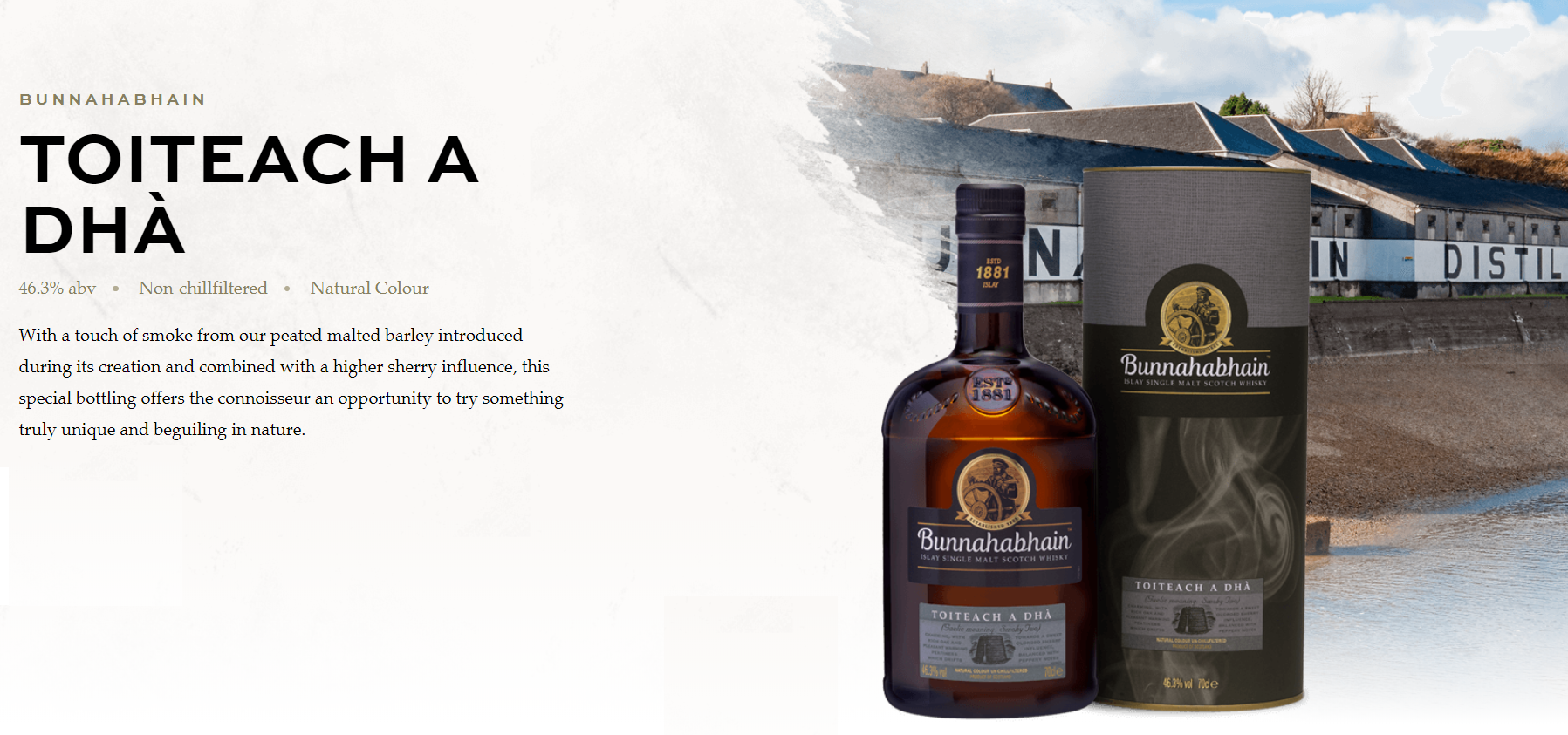 부나하벤 토흐카흐 or 토흐아흐 제품은 게일어로 Smoky Two 2가지의 스모키함을 나타내는 것으로 아일라 특유의 피티함과 스모키함을 동시에 즐길수 있는 제품입니다. 버번캐스크와 셰리캐스크를 이용하여 숙성시켜 다양한 향을 첨가하였으며 아일라의 정수를 느낄수 있는 제품입니다.