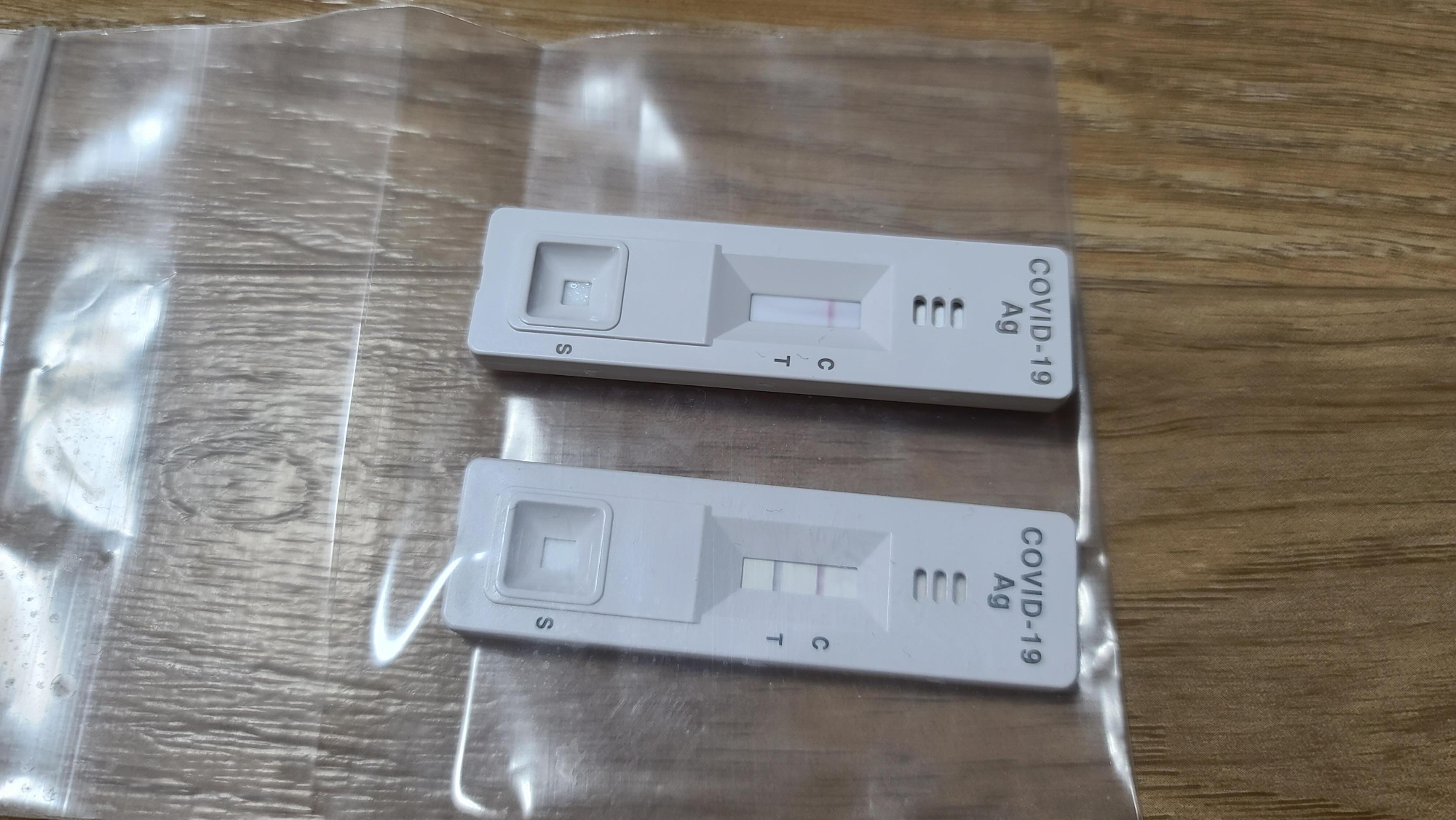 자가진단 테스트기에서 한줄은 코로나 바이러스 항원이 검출되지 않은 상태로 음성을 나타내며, 두줄은 항원이 검출된 상태로 양성상태를 나타냅니다.