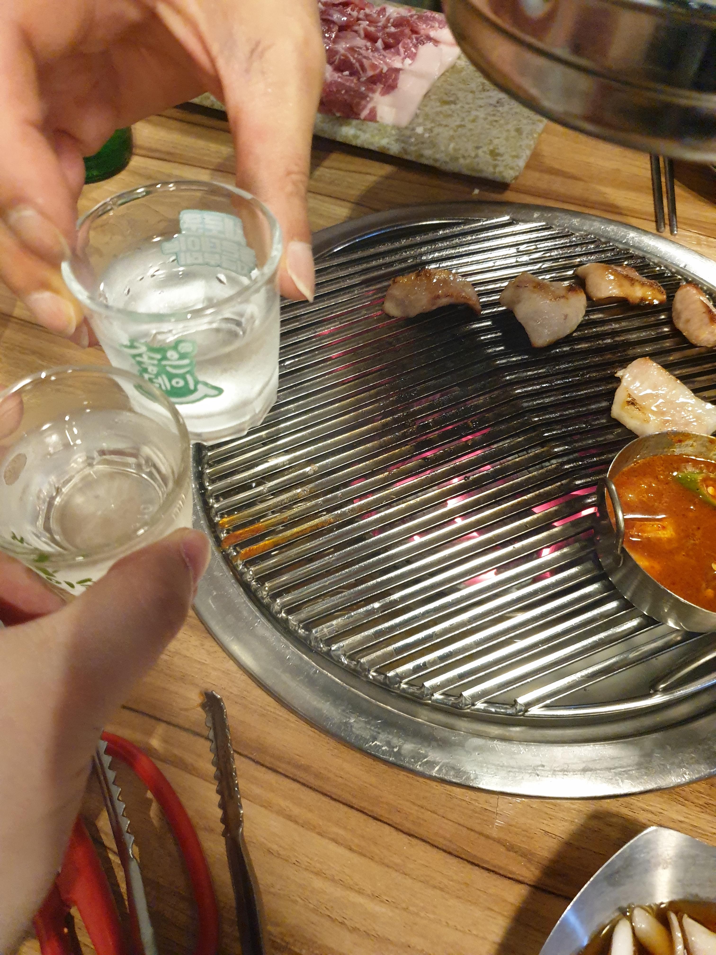이 감칠맛에 어울리는 소주로 기름기를 씻어줍니다. 술을 자주 마시지만 특히 이 돼지연구소에서 먹는 소주맛은 남다르게 느껴집니다.