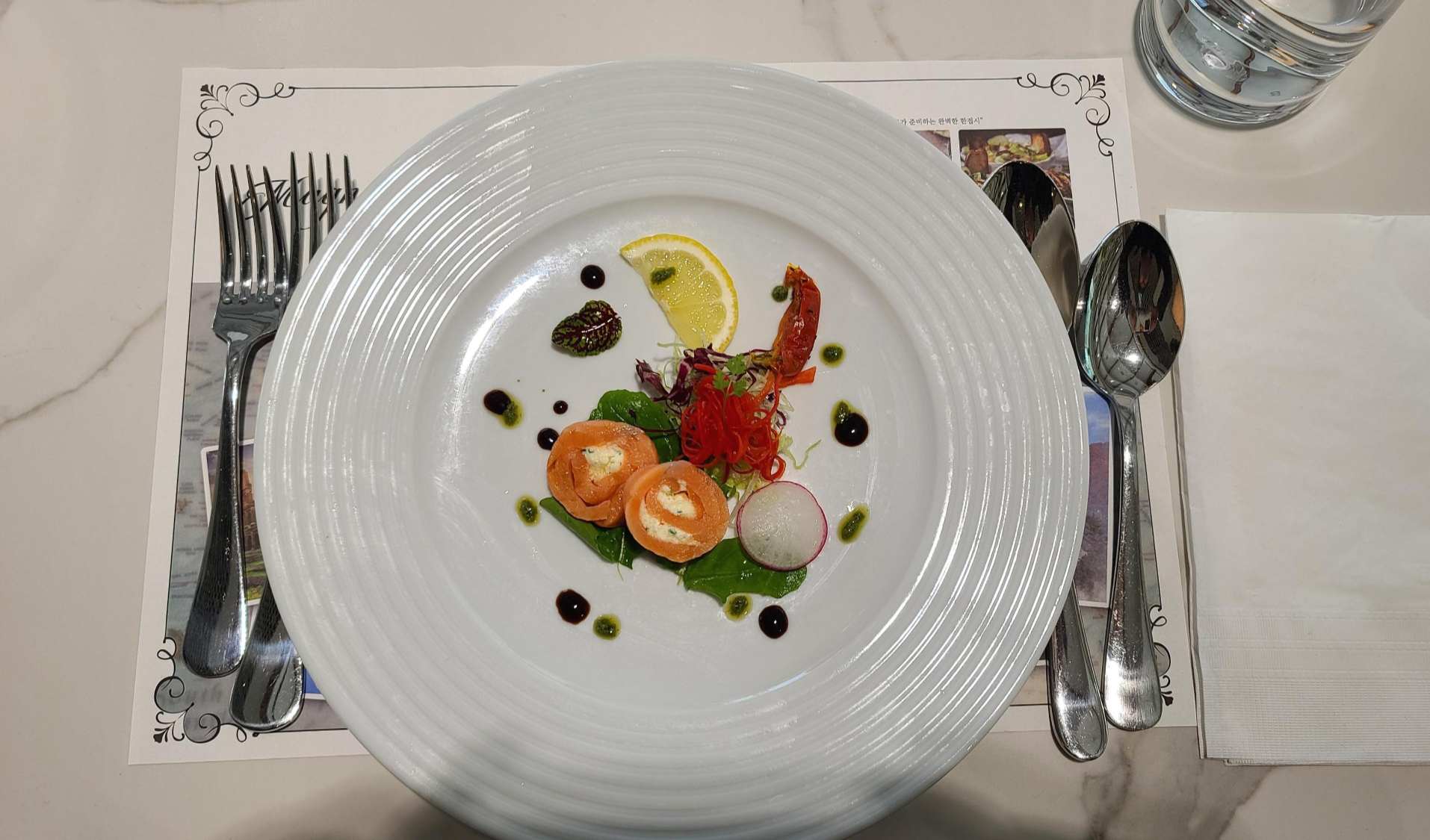 수프에 이은 메뉴는 샐러드와 피클입니다. 메인이 나오기전에 샐러드와 피클로 입속을 깨끗하게 환기시키며 메인에 대한 기대감을 불러일으키는 훌륭한 구성이라고 생각을 하게 됩니다.