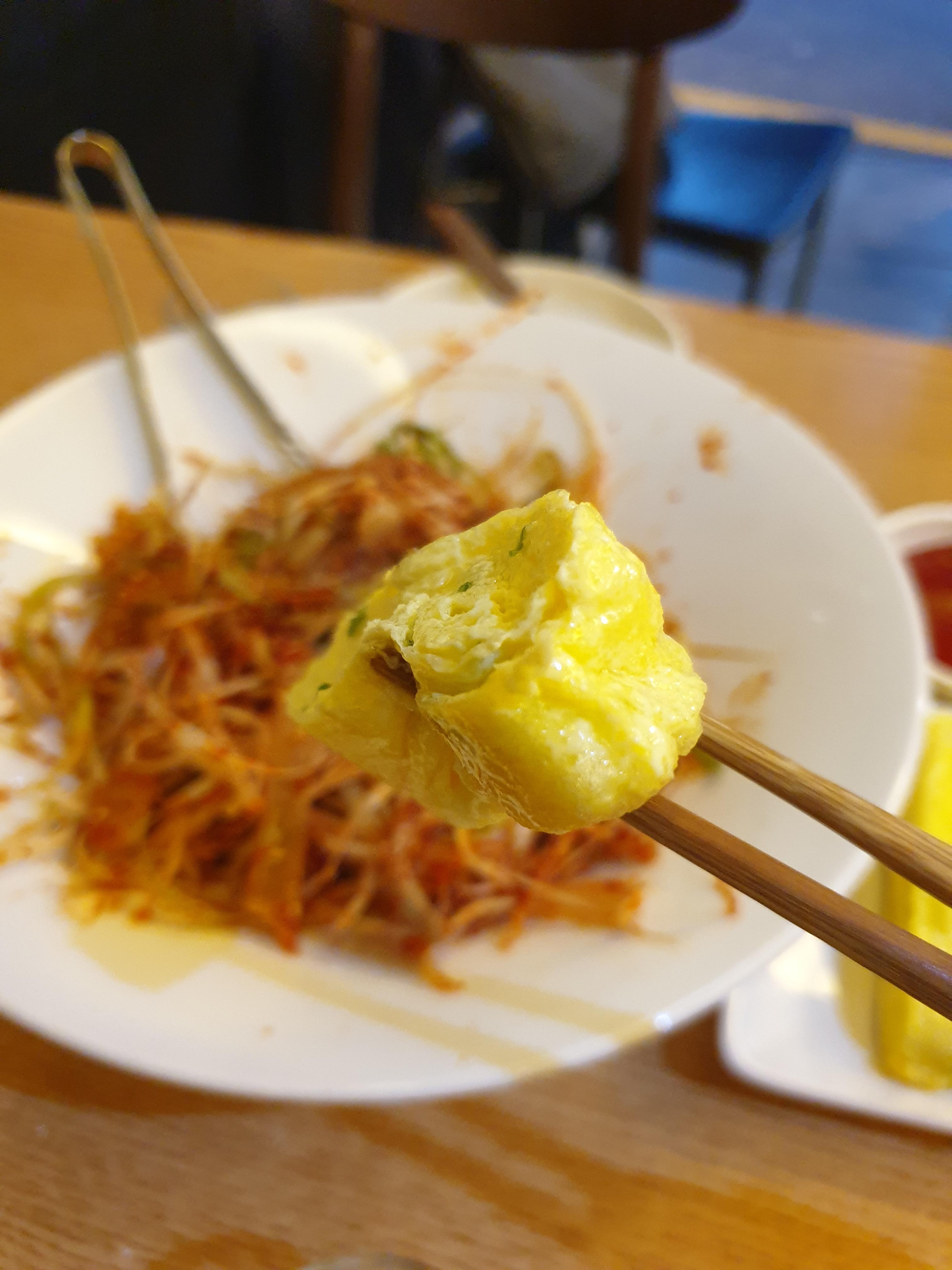 계란을 다먹고 주문한 쫄면사리를 추가해서 비벼봅니다. 소면과는 다른 쫄면의 탱글함이 신선하게 다가옵니다.