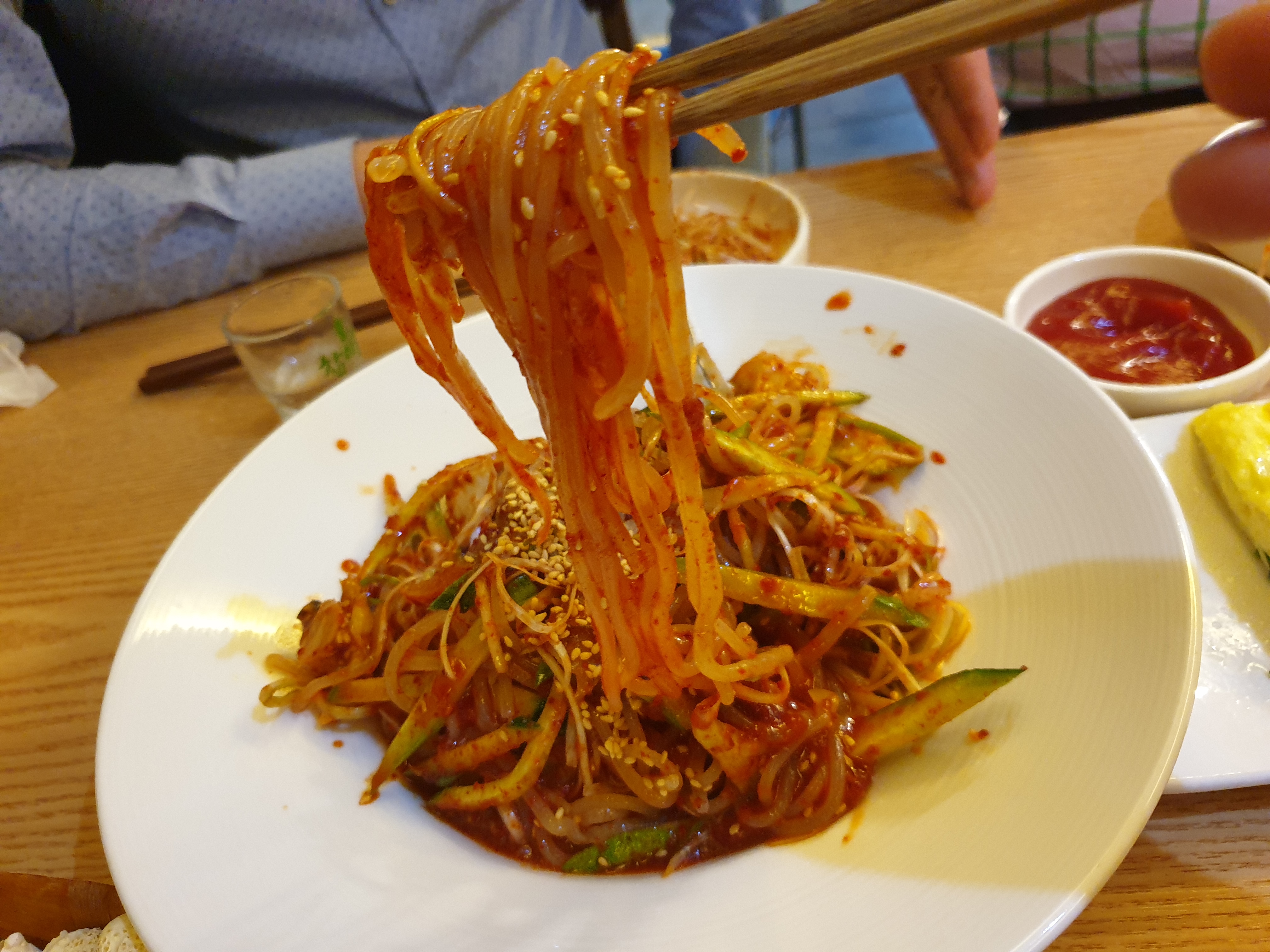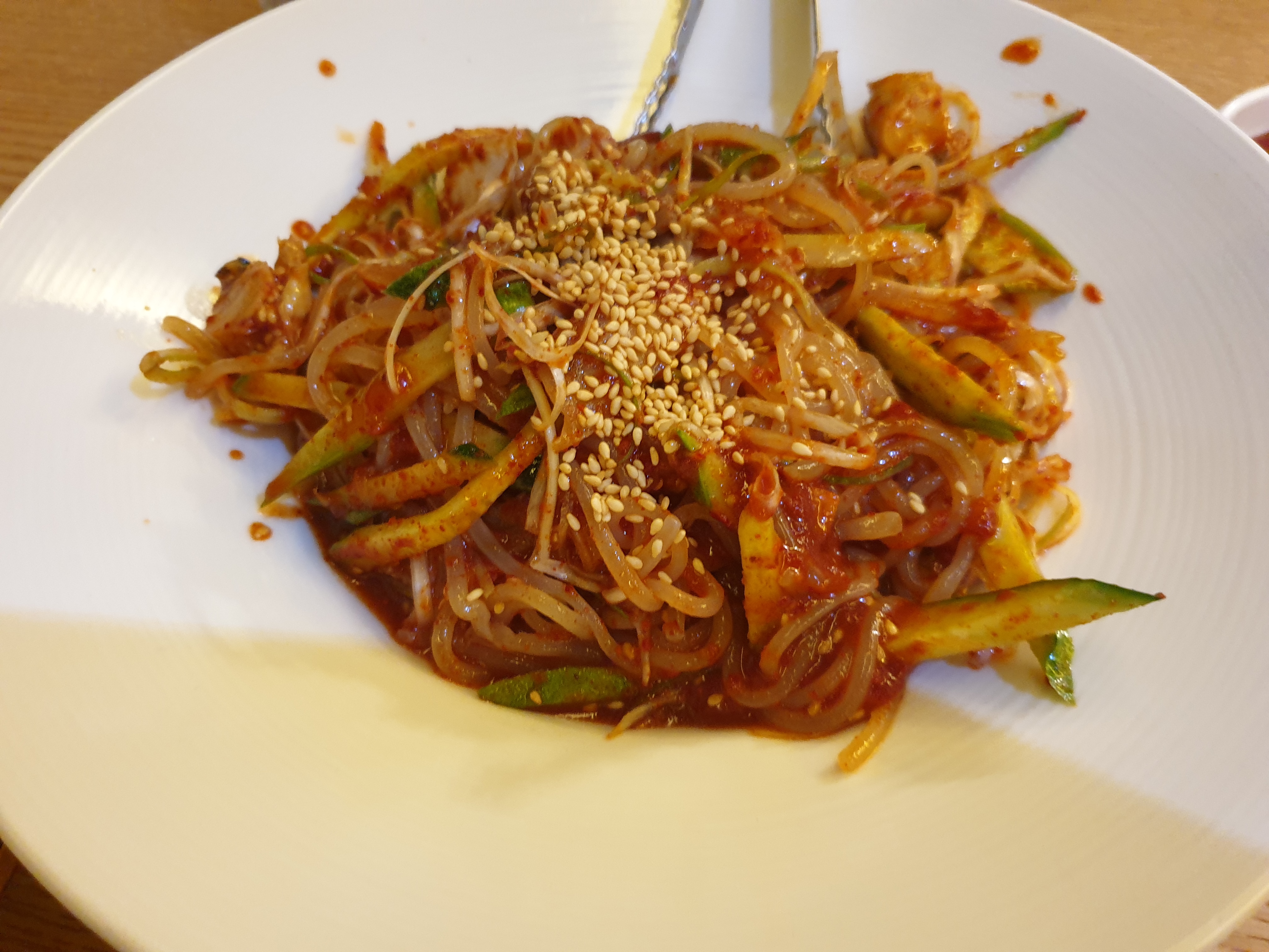 쫄면의 탱글함을 담아봅니다. 탱글한 기분이 좋아서 한입넣으니.... 안익었네요....