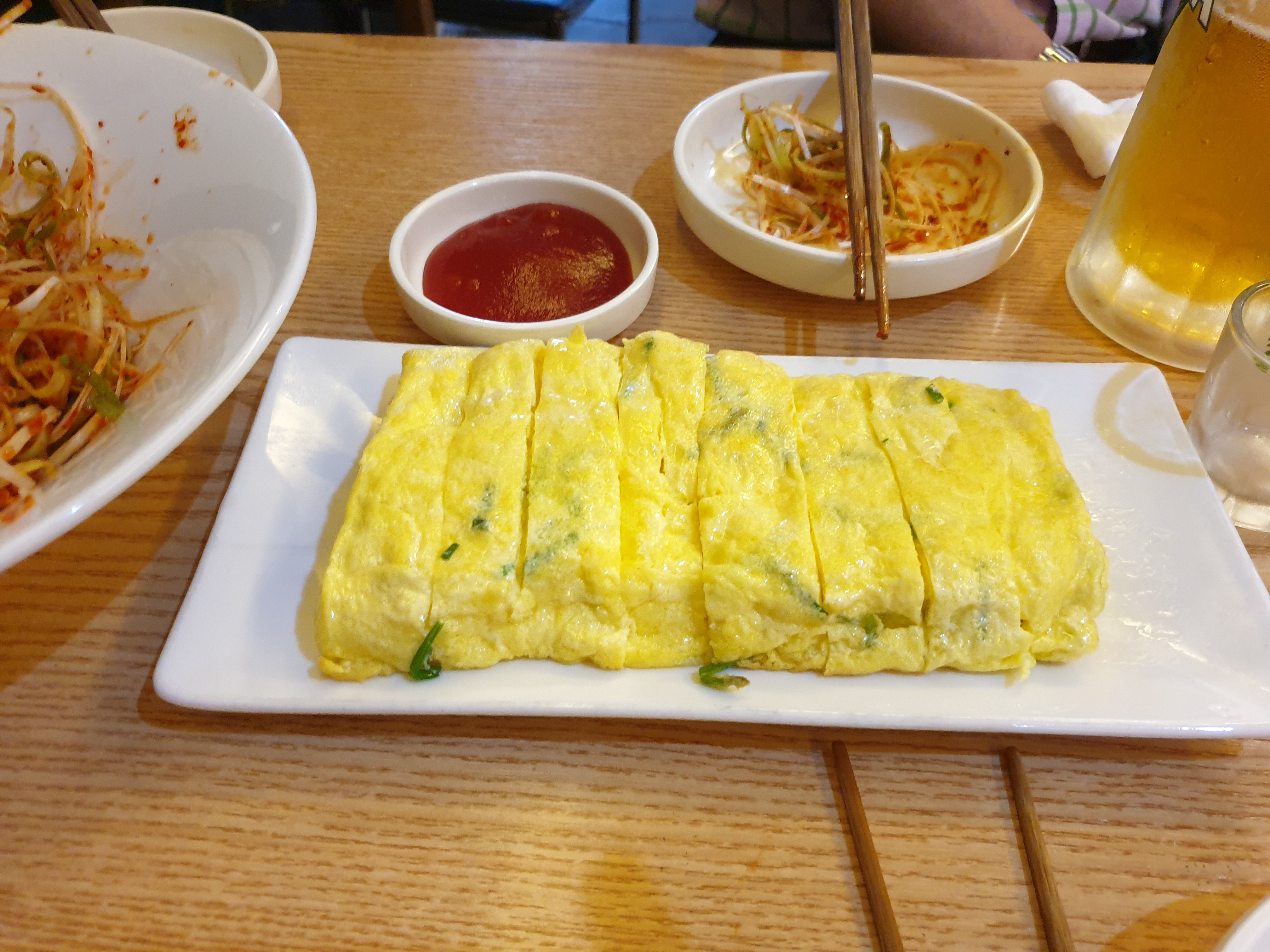 먹다보니 계란말이가 나왔습니다. 매워서 맥주만 들이키고 있었는데 아주 적절한 타이밍에 나온 계란말이가 반갑습니다. 계란말이 맛을 봅니다. 다행이 계란에 물을 섞지는 않은것 같습니다. 서초에 오면 아주 유명한 물란말이 집이 있기 때문에 항상 조심하게 됩니다.