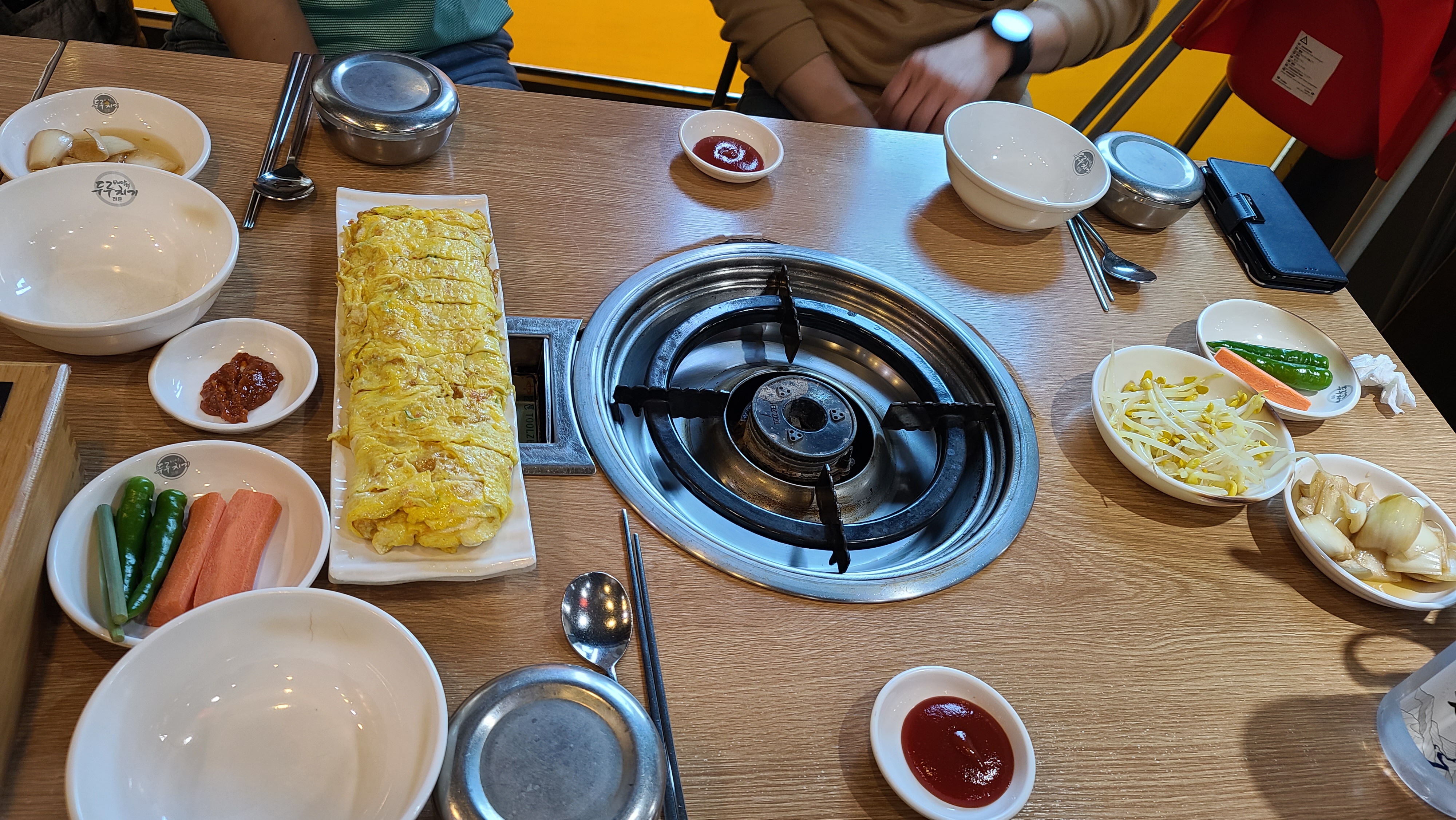 잠시 기다리자 주문한 계란말이와 밑반찬이 먼저 나왔습니다. 푸짐한 크기의 계란말이를 살짝 찍어 맛을보니 간이 잘되고 계란물의 농도도 알맞게 느껴지는게 물란말이와는 차원이 다른 것이 느껴집니다.