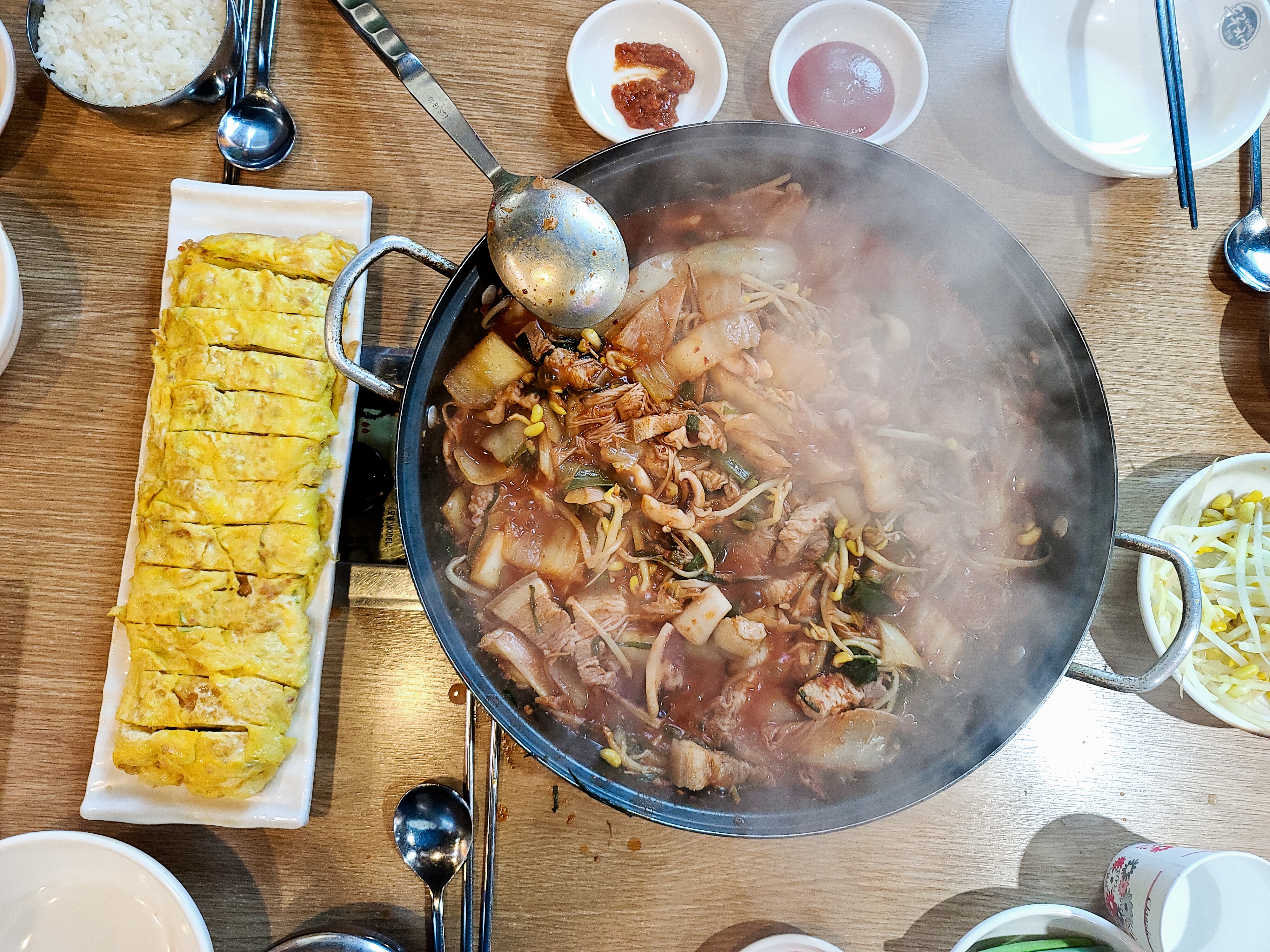 잘끓여낸 오징어오겹살에 계란말이를 조합하여 먹어봅니다. 상당히 매콤하면서도 오징어와 오겹살의 담백한 조합이 매우좋습니다. 매콤한 맛은 계란말이와 함께하면 중화가 되면서도 담백함이 더욱 잘 살아나게 됩니다. 역시 전국적으로 뻗어나가는 음식점은 이유가 있는것 같습니다.