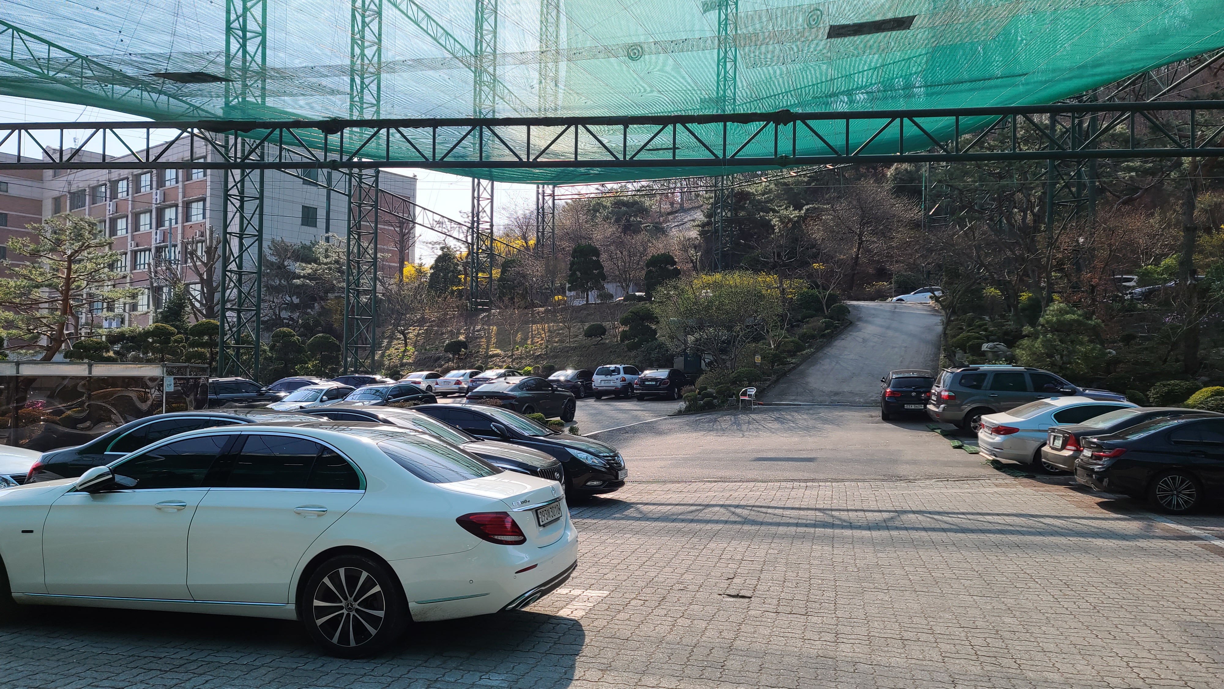 주차장에 차를 세우고 입구를 담아봅니다. 본격적인 골프시즌이라 그런지 주차장에 차들이 가득히 들어차있습니다. 입구에는 역시 나무들이 심어져있어 자연속에 위치한 골프장의 모습을 담아내고 있습니다.