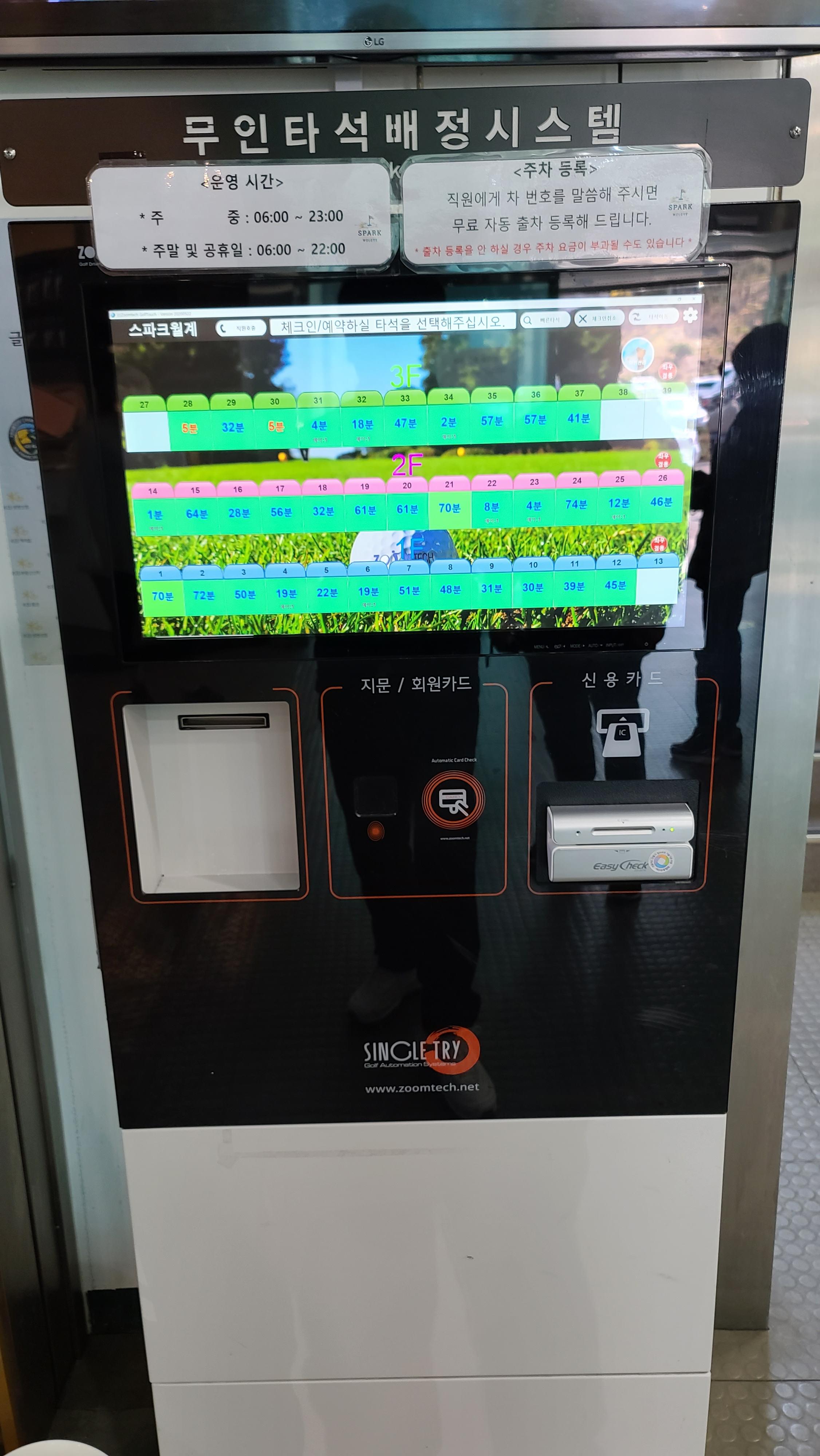 입구를 살펴보니 카운터가 있고 왼편에는 카카오프렌즈 라이언 전무님이 반겨주시고 있습니다. 직원분께서 무인타석 배정시스템에서 예약하는 법을 도와주십니다. 자리가 만원이라 가장높은 3층 타석을 예약하고 기다려봅니다.