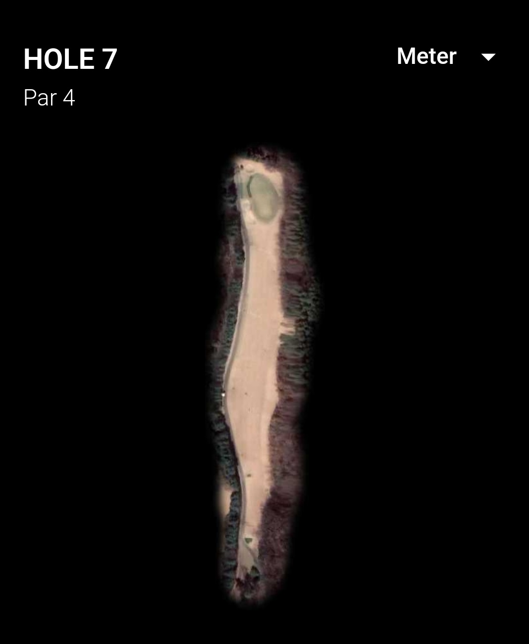 7번 오르막과 내리막이 있는 파4홀입니다. 티샷박스에서 보면 오르막으로 이루어져 있지만 랜딩지점부터는 내리막으로 이루어져 있습니다. 좌측 도로 절벽 우측 법면으로 우측방향으로 티샷을 하면 유리할 것 같지만 수풀이 우거져서 잘 내려오지 않으므로 주의하여 공략하여야 합니다.