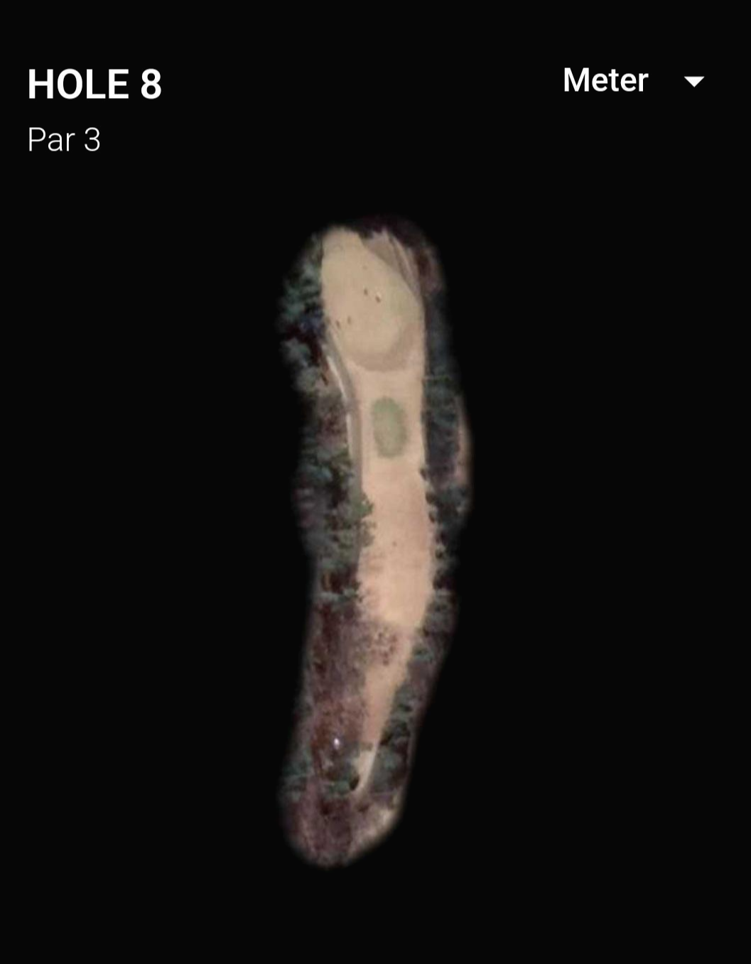 8번 파3홀은 그린이 앞뒤로 2개가 보이지만 뒷쪽그린을 사용한다고 합니다. 앞쪽그린 거리는 80~90m 정도로 아마 거리를 늘리기 위하여 뒤쪽에 그린을 새로 만든것이 아닌가 하는 생각이 들게 됩니다. 레이디티와 화이트티가 똑같이 위치한 110m 정도 거리의 짧은 코스로 내리막으로 이루어져 있으므로 신중하게 런까지 생각해서 공략한다면 좋은 결과를 얻을수가 있습니다.