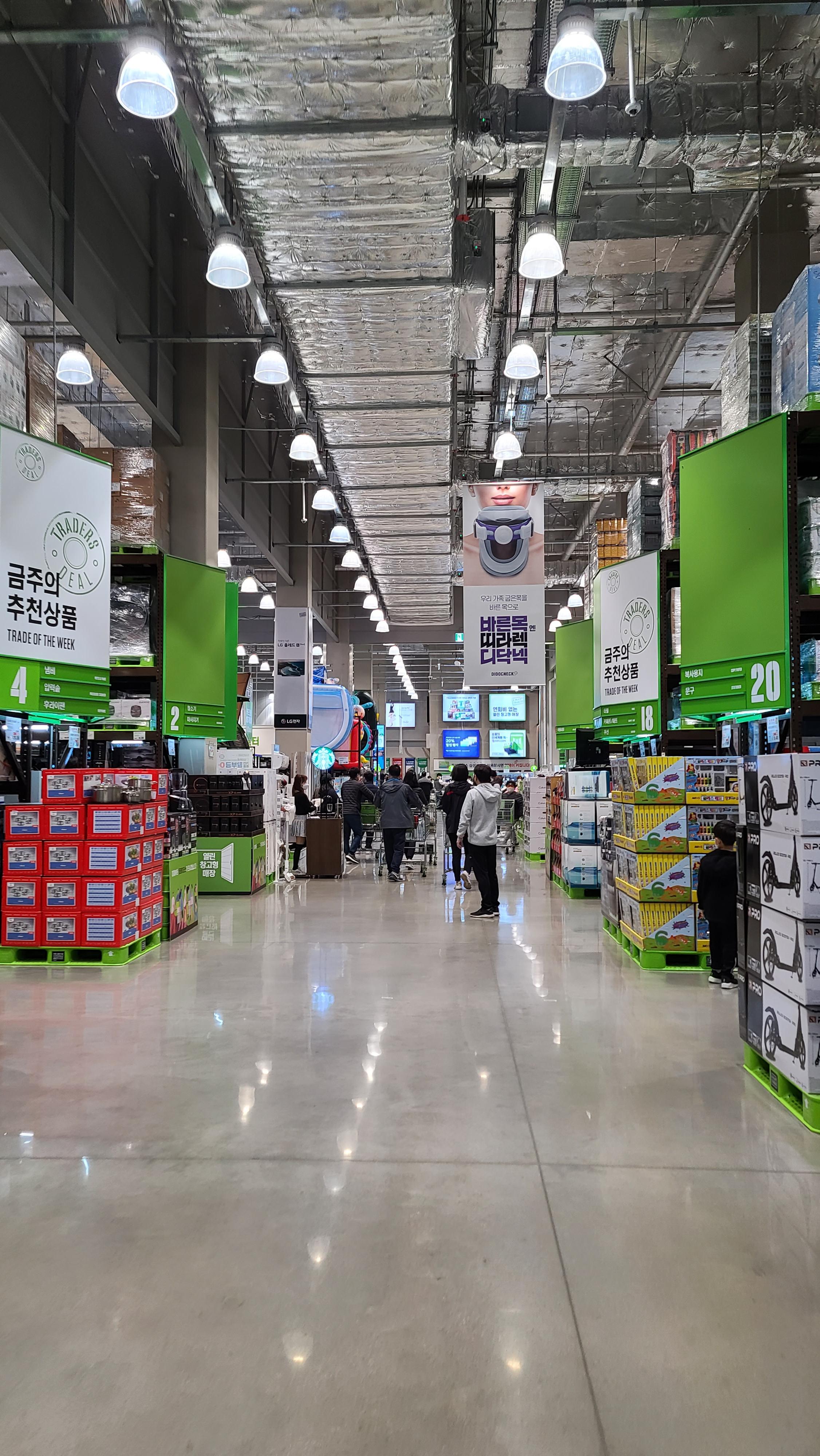 이마트 트레이더스 월계점의 모습입니다. 서울의 유일한 매장으로 옆의 이마트와 연결되어 있는 것이 특징이며 서로 연결되어 있어 자유롭게 이마트와 이마트 트레이더스를 오가며 쇼핑을 할 수 있는 구조입니다.