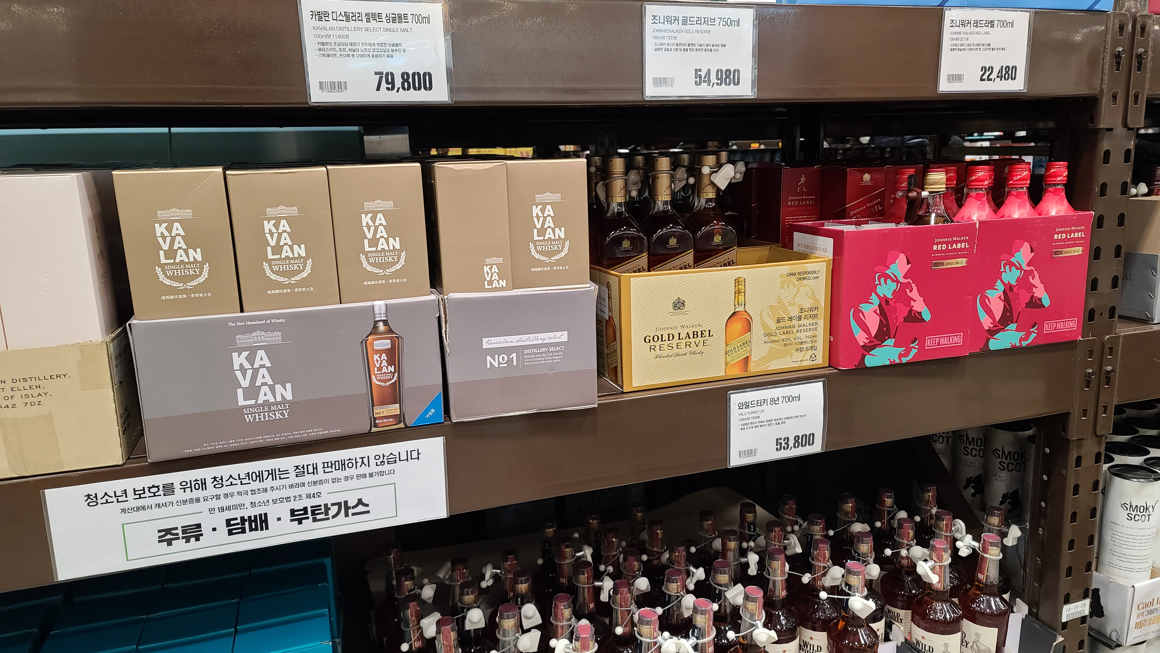 스페셜릴리즈 아래로는 조니워커 골드와 레드 그리고 와일드터키 8년 제품이 보입니다. 이마트 트레이더스에서 디아지오의 파워가 높다고 새삼느껴지는 부분입니다.