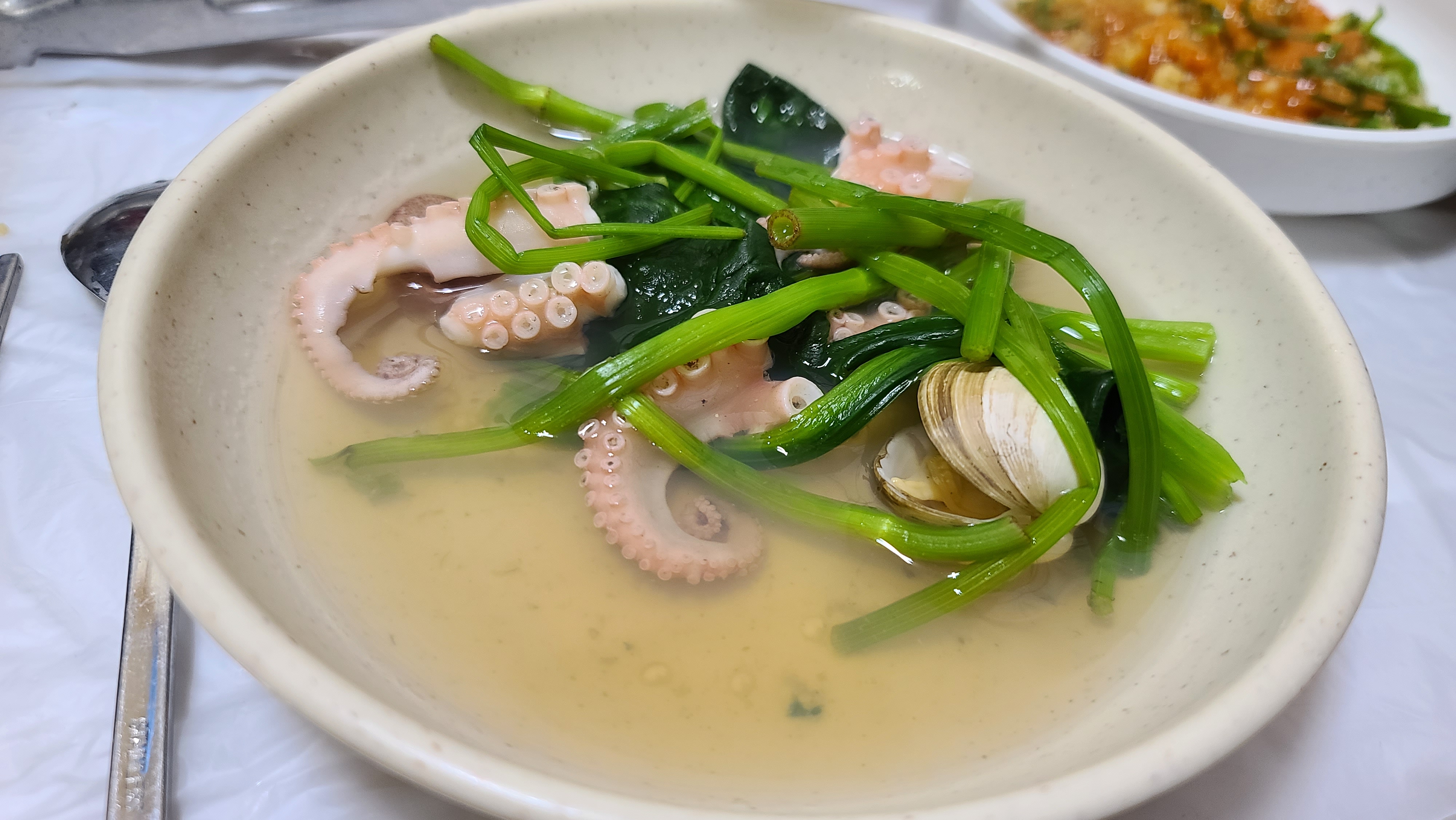 잠시 기다리자 왠 조개탕을 하나 세팅해 주십니다. 주문이 잘못들어갔나 확인을 해보니 회를 시키면 나오는 코스라고 합니다. 회를 시키면 조개탕이 나오다니 매우 서비스가 좋다는 생각을 하며 조개를 살펴보니 대합, 소리, 동죽, 가리비 등 다양한 종류의 조개가 푸짐하게 들어가있는 것이 보입니다. 회가 나오기전에 술이 술술 들어갈것 같은 비주얼입니다.