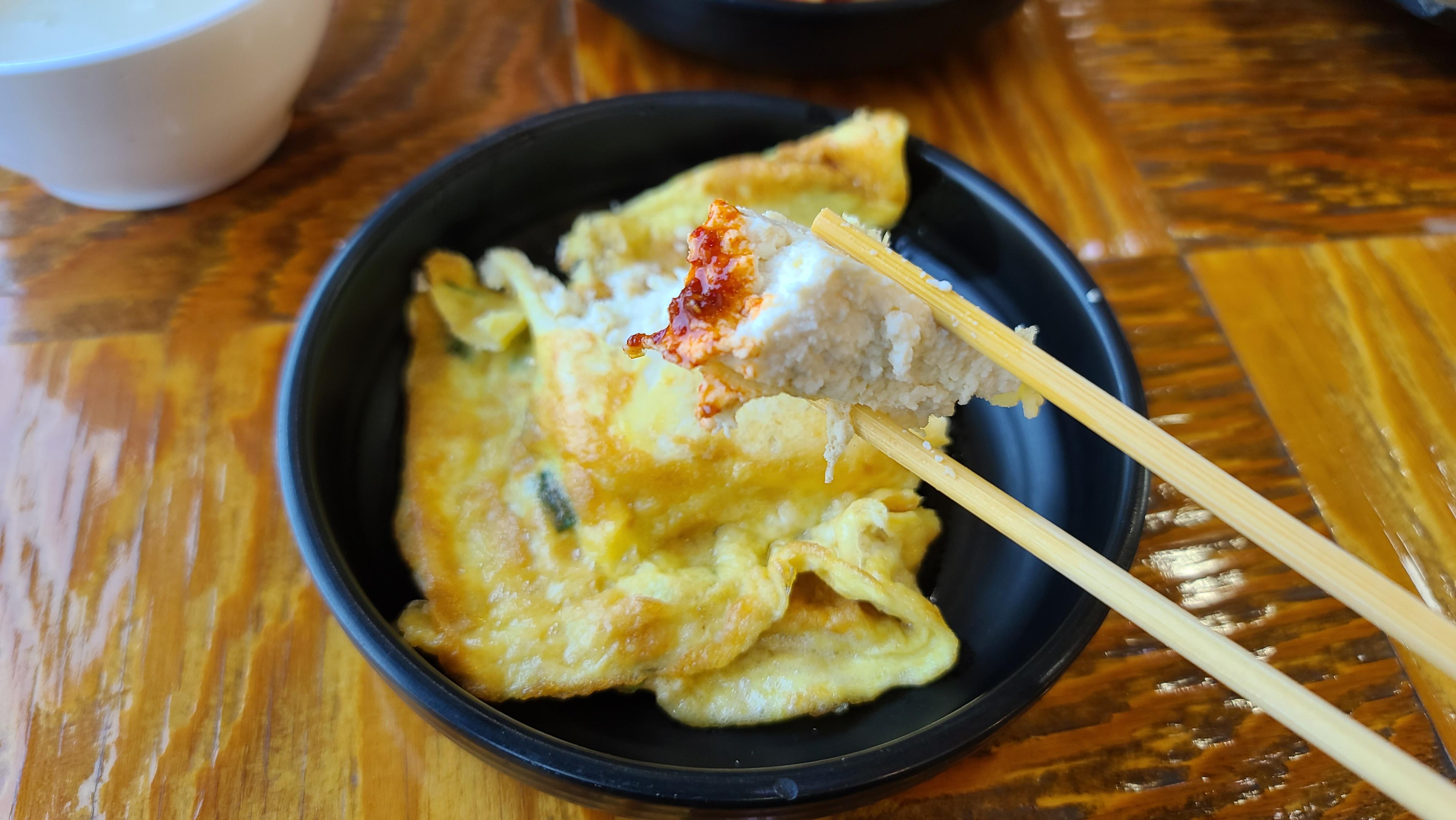 주문한 두부부침이 먼저 나왔습니다. 부드러운 수제 두부를 계란옷을 뭍혀 부쳐낸 매우 토속적이며 고향집이 생각나는 메뉴입니다.