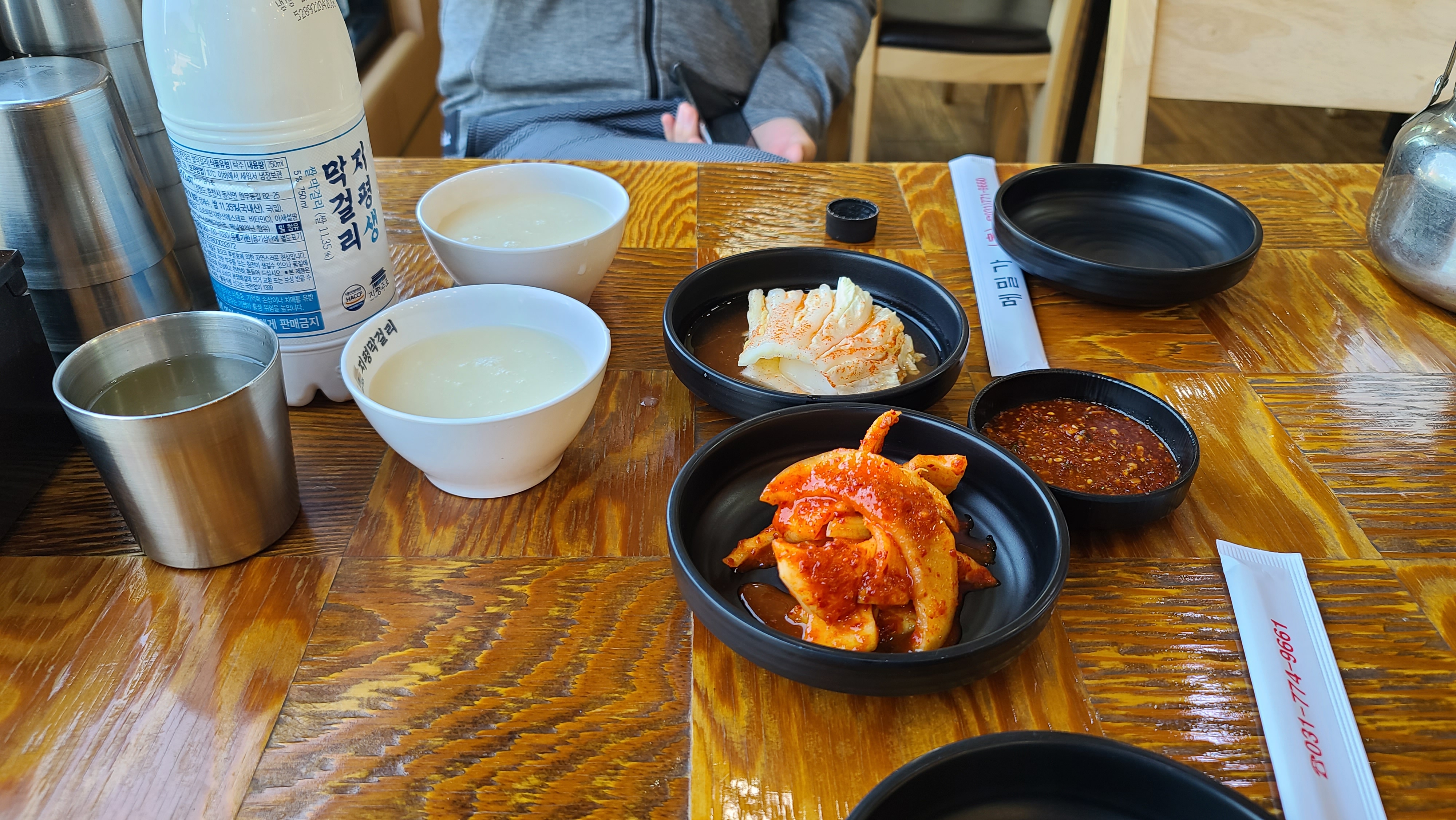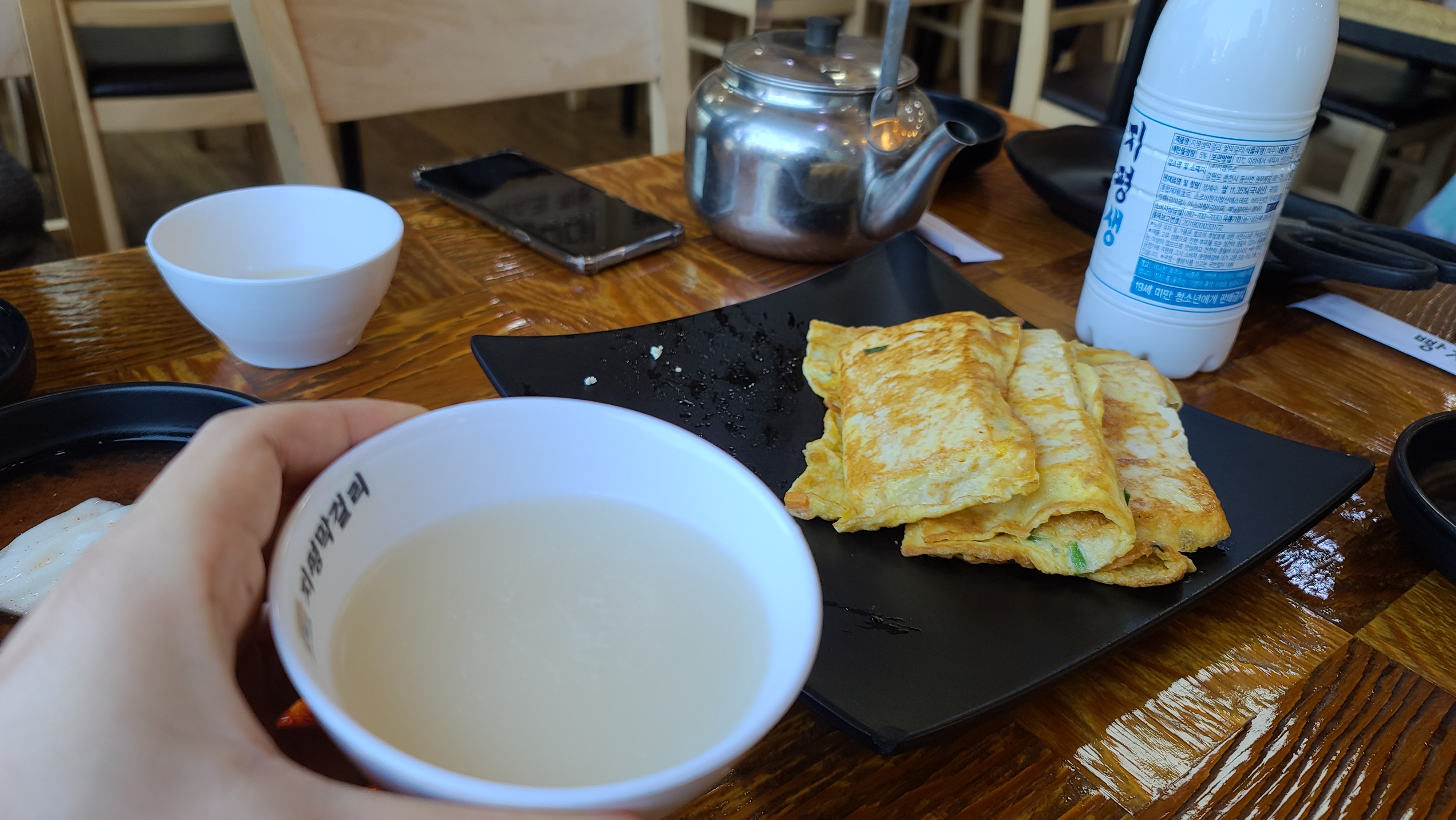 따끈한 두부부침을 덜어서 양념장에 찍어서 막걸리와 함께 맛을 보니 고소한 두부의 맛과 향이 막걸리의 시큼함과 만나 천상의 맛을 자아냅니다. 막걸리와 두부의 조화로움에 잠시 여행온 기분이 극대화 되는 오묘한 경험을 하게 됩니다.