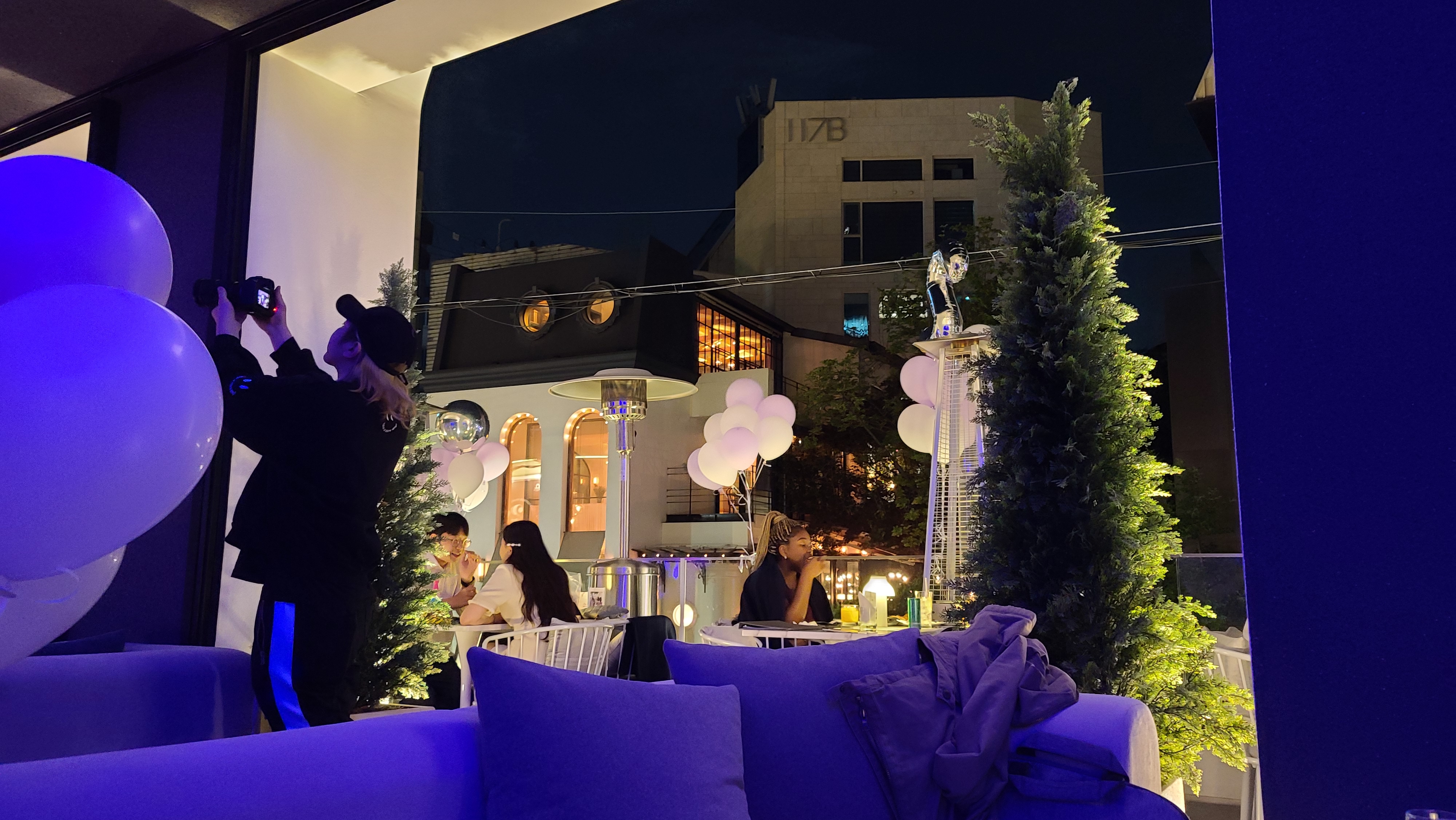강남 피플더테라스는 테라스형 라운지바로서 청담동에 위치하고 있으며 분위기가 좋은 핫플레이스로서 인기가 많으며 위스키, 샴페인, 코냑, 칵테일 등 다양한 주류와 파스타, 치킨, 스테이크 등 맛있는 요리가 특징인 곳입니다. 도착해서 외관을 살펴보니 테라스형 건물에 조명, 나무들과 풍선으로 장식해 놓은 모습이 보입니다.