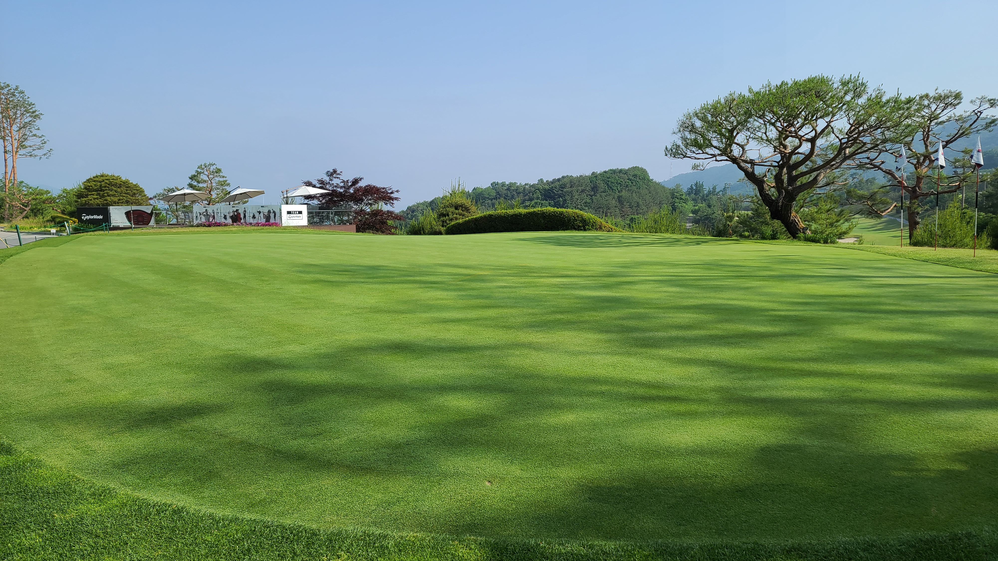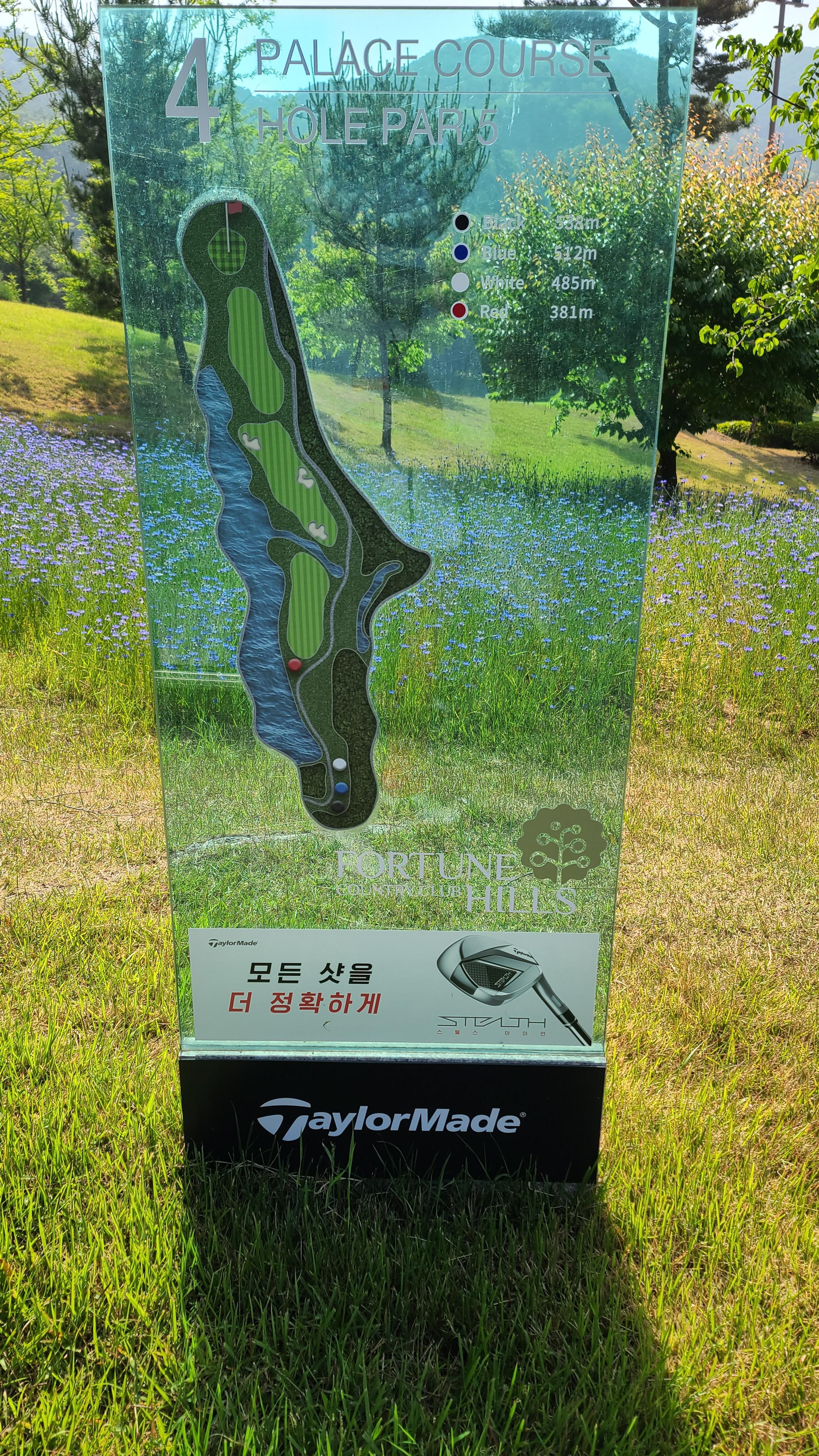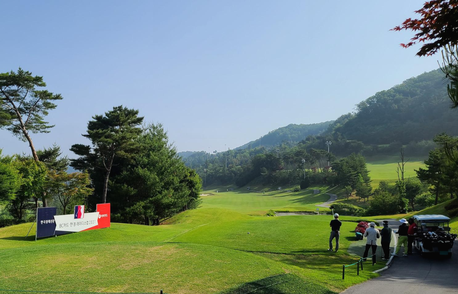후반전 팰리스코스도 역시 파5부터 시작입니다. 대회 코스라 그런지 BC카드 한경 레이디스컵 간판이 눈에 들어오며 마치 대회를 즐기는 듯한 기분을 자꾸만 들게 만듭니다.
