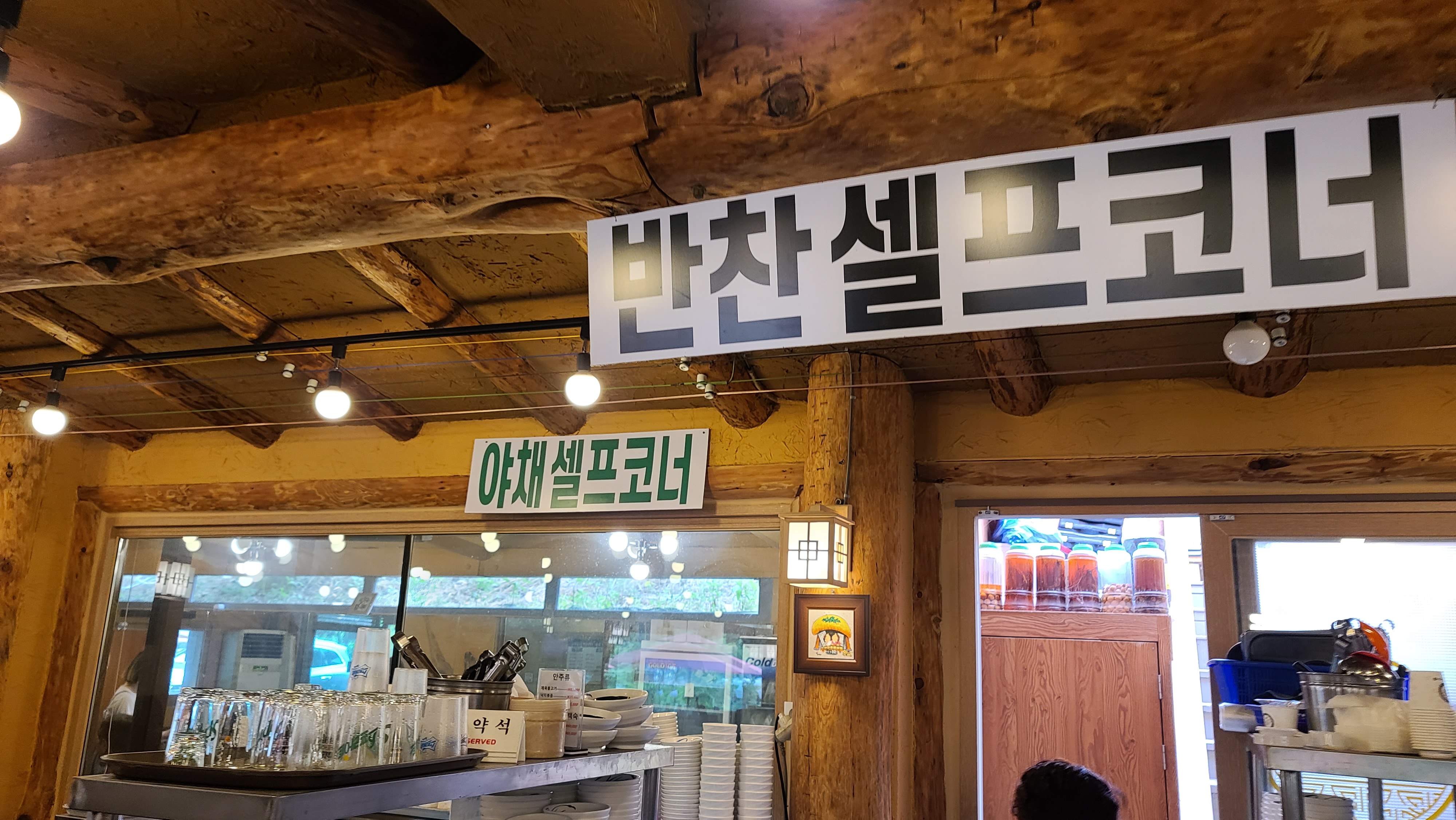 황금정원의 가장 좋은 점은 쌈채소를 마음껏 먹을수 있다는 점입니다. 산속 풍경좋은 곳에서 좋은공기를 느끼며 쌈채소를 마음껏 흡입합니다. 반찬또한 마음껏 덜어먹을수가 있는 좋은 구조입니다.