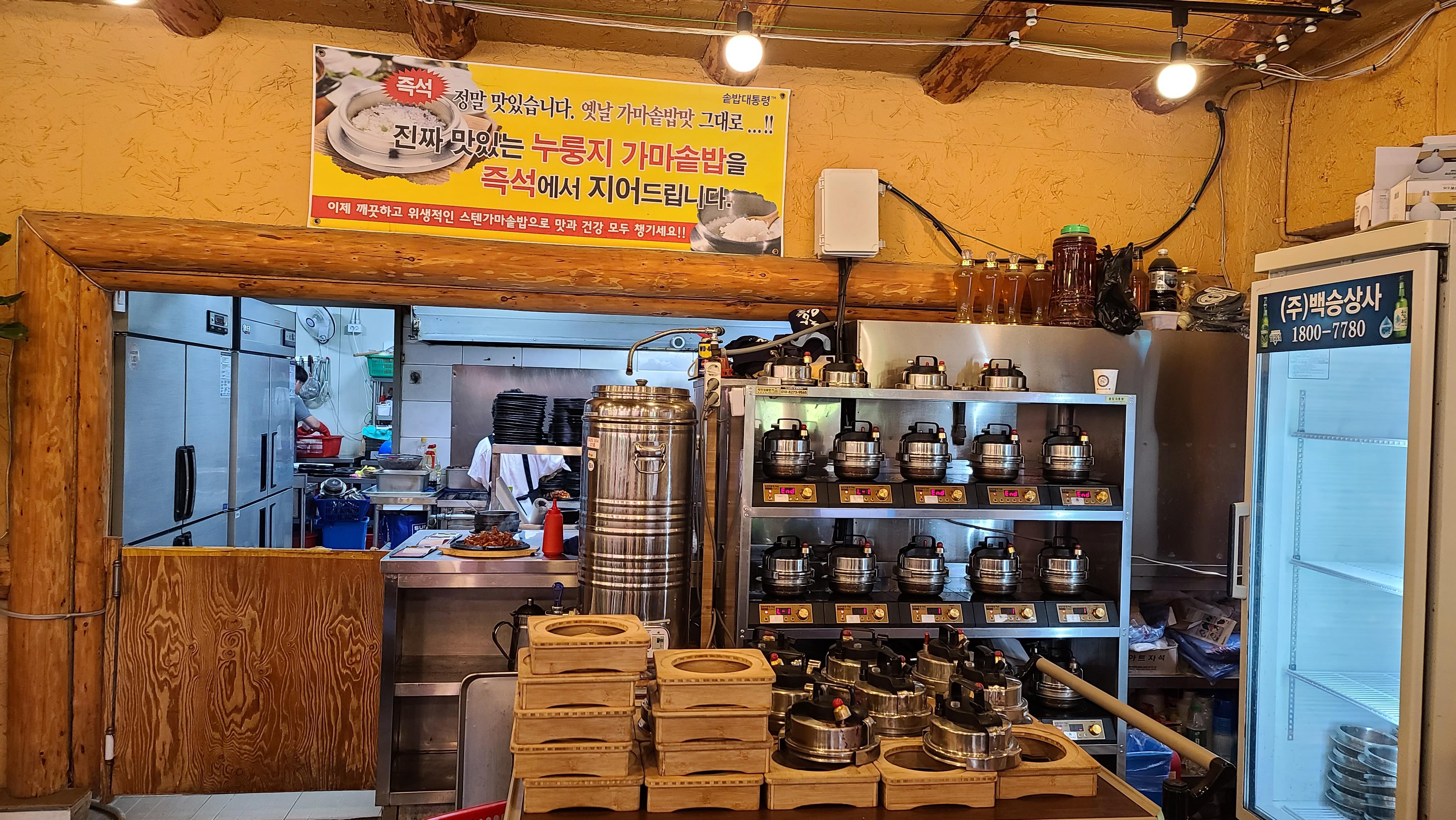 입구에서 자리를 기다리는동안 살펴보니 오픈형 주방에 가마솥밥이 가득올려져있는 모습이 보입니다. 가마솥밥 전용 조리기로 밥을 지으니 일정한 밥맛이 나오겠구나 하는 생각을 하게되며 기대가 되고 있습니다.