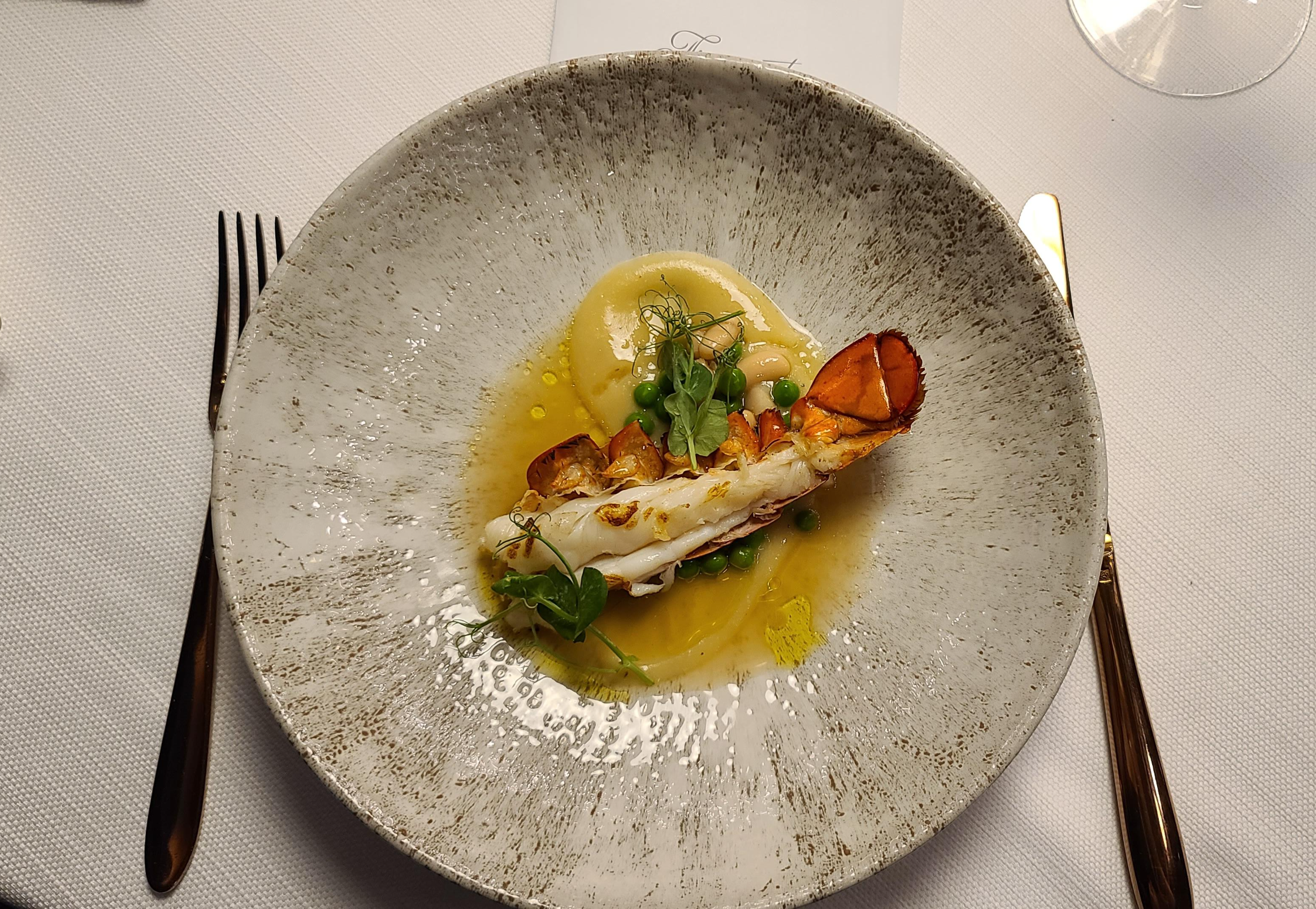 메인으로 선택한 랍스터 요리가 나왔습니다. 알맞게 쪄낸 랍스터에 감자 에멀젼을 뿌리고 흰 강낭콩과 완두콩을 곁들인 요리로 돼지육수로 만든 소스를 끼얹어 나오는 것이 특징입니다. 소스와 콩, 감자의 조합은 좋으나 랍스터가 생각보다 짜게 느껴집니다. 다음에는 스테이크로 가봐야겠다는 생각을 들게 만드는 조금 아쉬운 코스가 아닐수 없습니다.