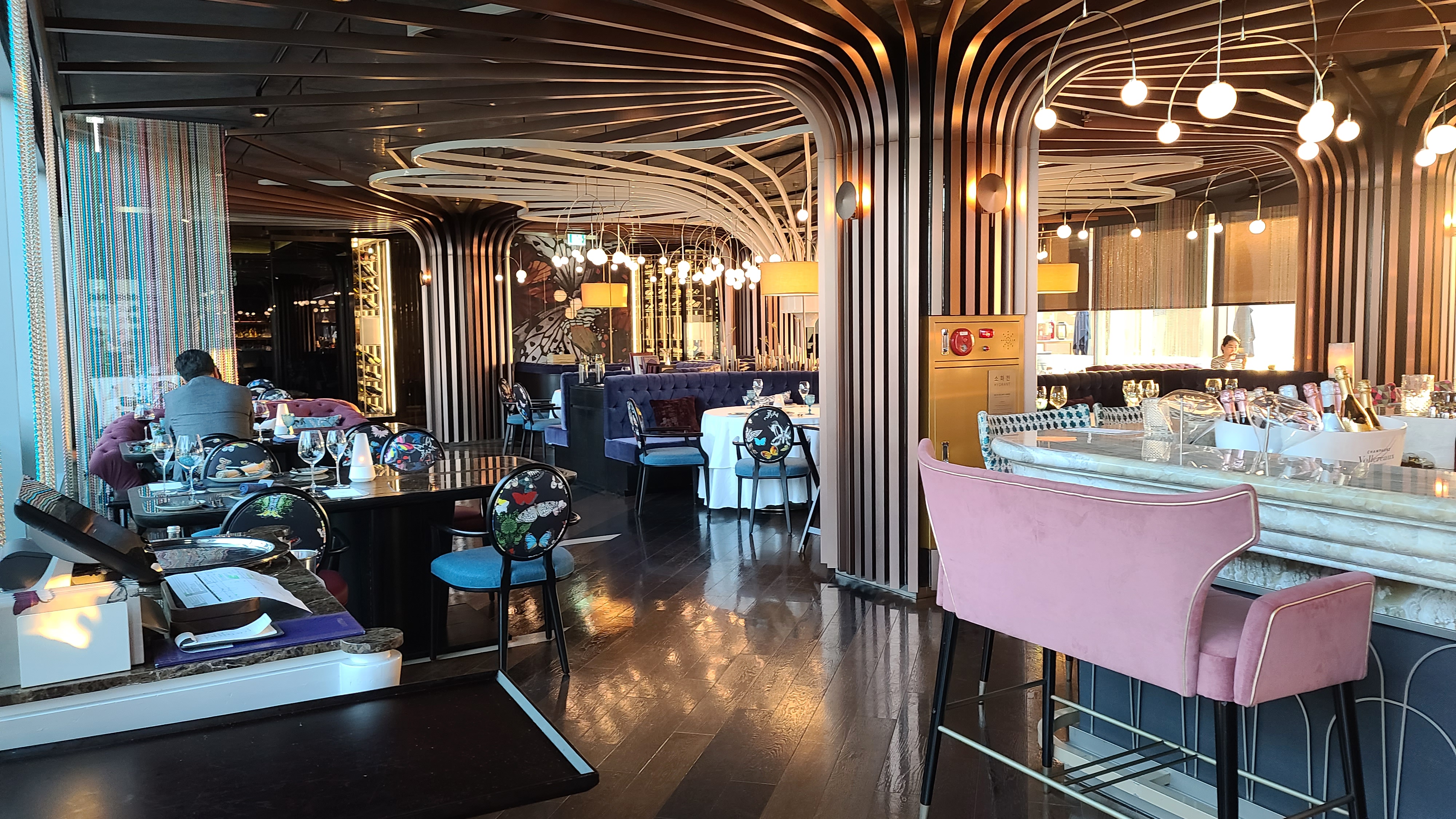 호텔 엘리베이터를 타고 29층으로 올라가니 마리포사 레스토랑 입구가 보입니다. 입구 양쪽으로 와인셀러가 배치되어 있고 나비액자와 나비를 형상화한 인테리어가 들어옵니다. Mariposa 스페인어로 나비를 뜻하는 레스토랑 이름답게 인테리어에서 나비가 연상되고 있는 모습입니다.