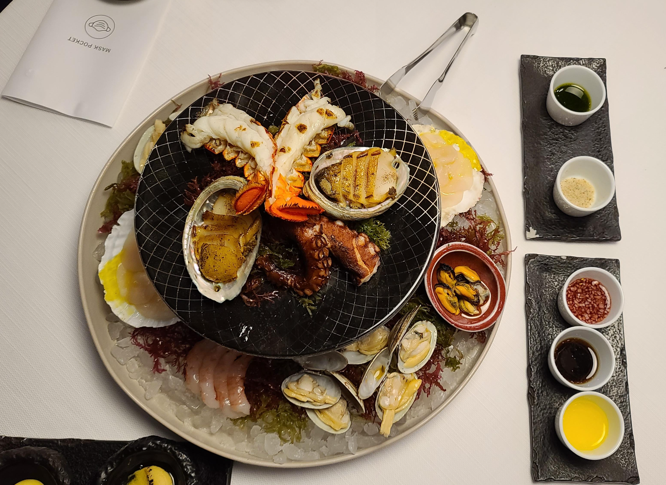 메인코스의 아쉬움을 달랠겸 추가적으로 주문한 해산물 플래터가 나왔습니다. 랍스터구이를 메인으로 전복, 문어구이, 홍합, 바지락, 생새우, 바지락이 담겨있는 해산물 모듬 코스요리입니다. 비주얼이 상당히 좋게 보여서 기대감이 가득한 메뉴입니다. 랍스터를 맛보니 이전과 다르게 단맛이 잘 느껴지고 있습니다. 문어의 구이정도도 좋았으며 전복과 다른 해산물들도 매우 만족스러운 코스입니다.
