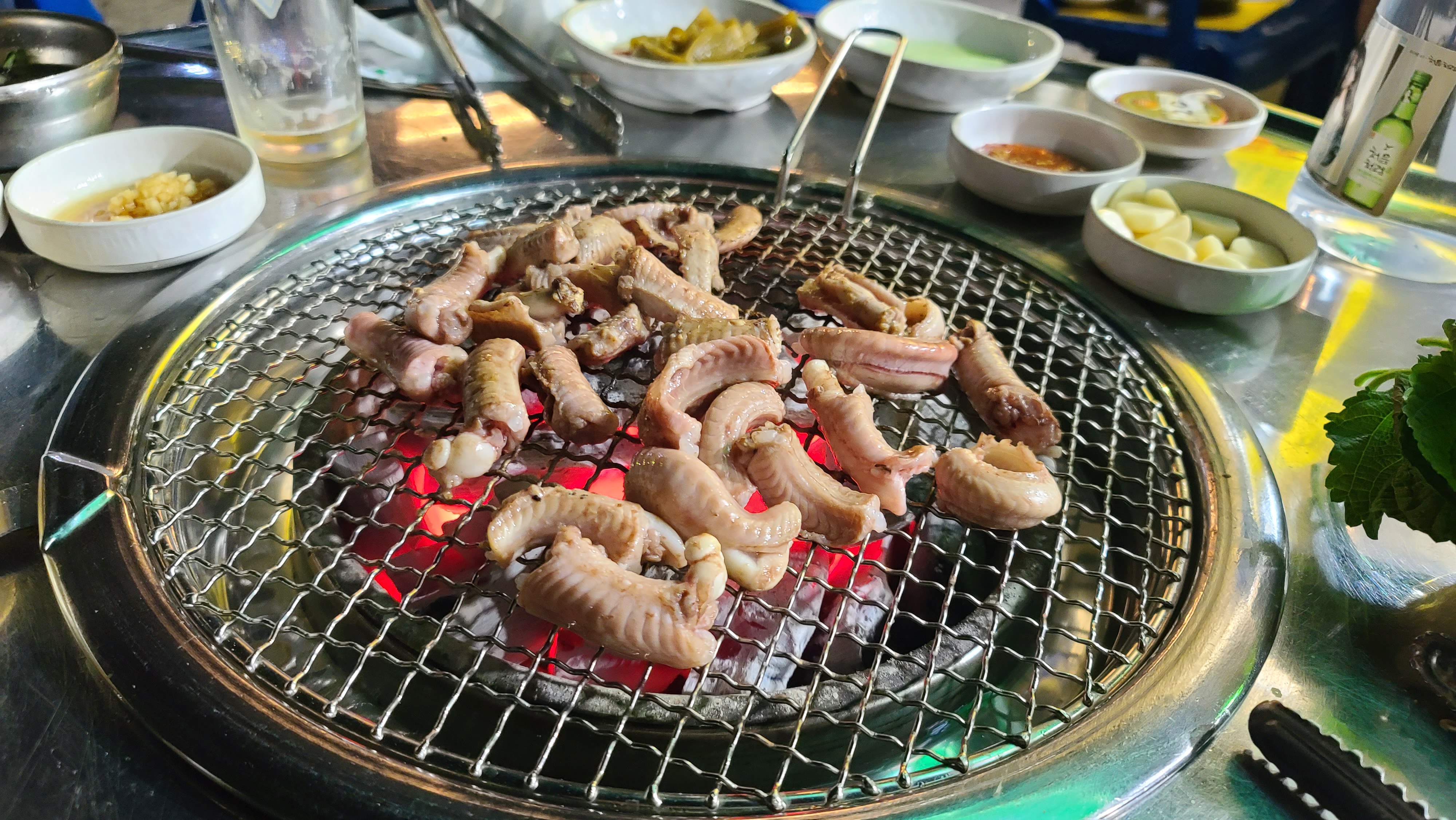 숯불에서 발버둥치는 비주얼때문에 보통 다른곳에서 구워다 주는 경우가 많지만 아무래도 산꼼장어인지 즉석에서 확인하려면 눈앞에서 구워야 합니다. 참 잔인한 음식이지만 맛만큼은 보장되는 산꼼장어가 기대되기 시작합니다.