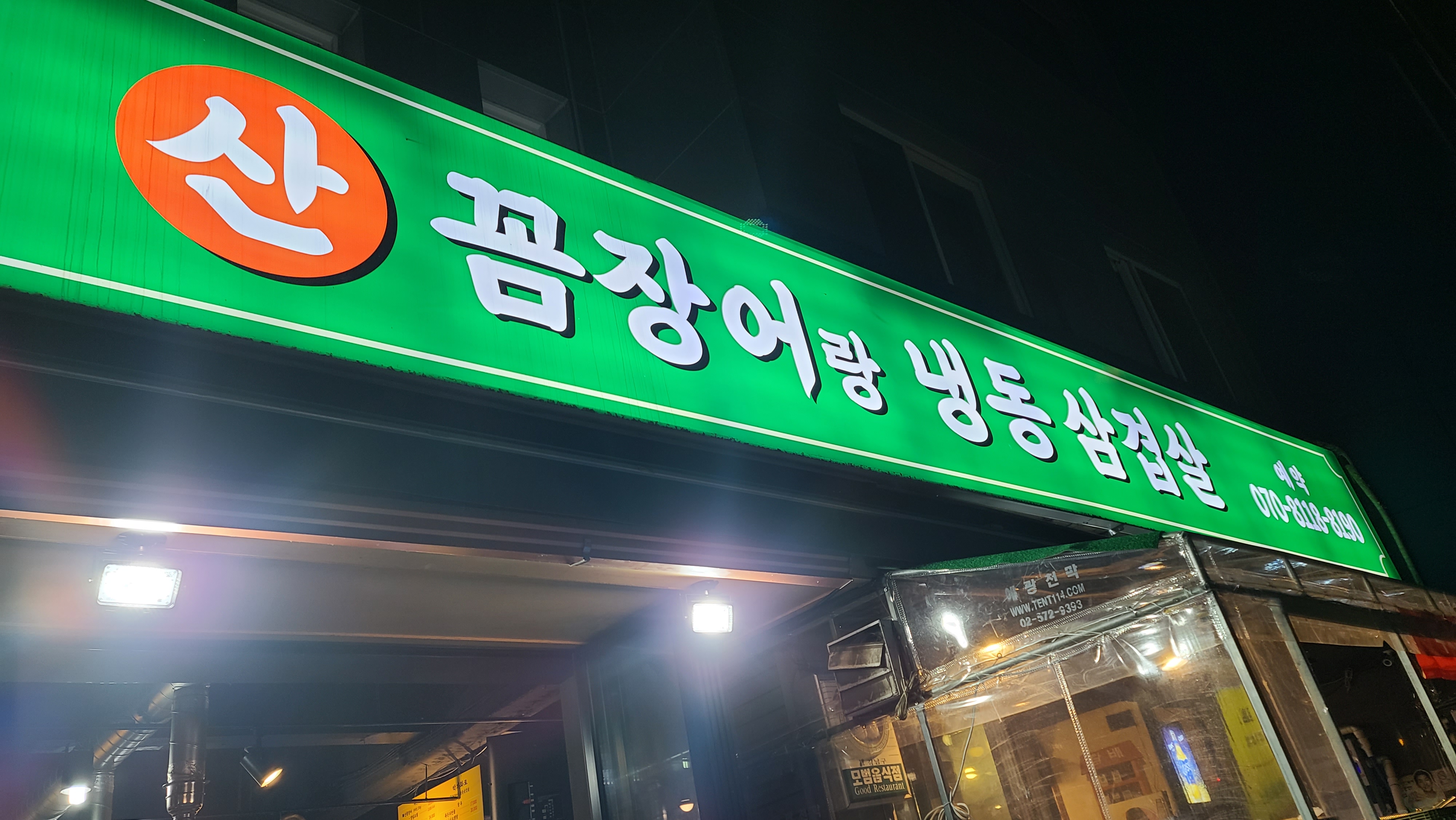 가까이가서 살펴보니 박가화로 산꼼장어랑 냉동삽겹살이라는 다소 긴 가게이름을 가지고 있습니다. 야밤에 먹는 산꼼장어와 소맥을 생각하니 생각만해도 침이고여서 들어가보기로 합니다.