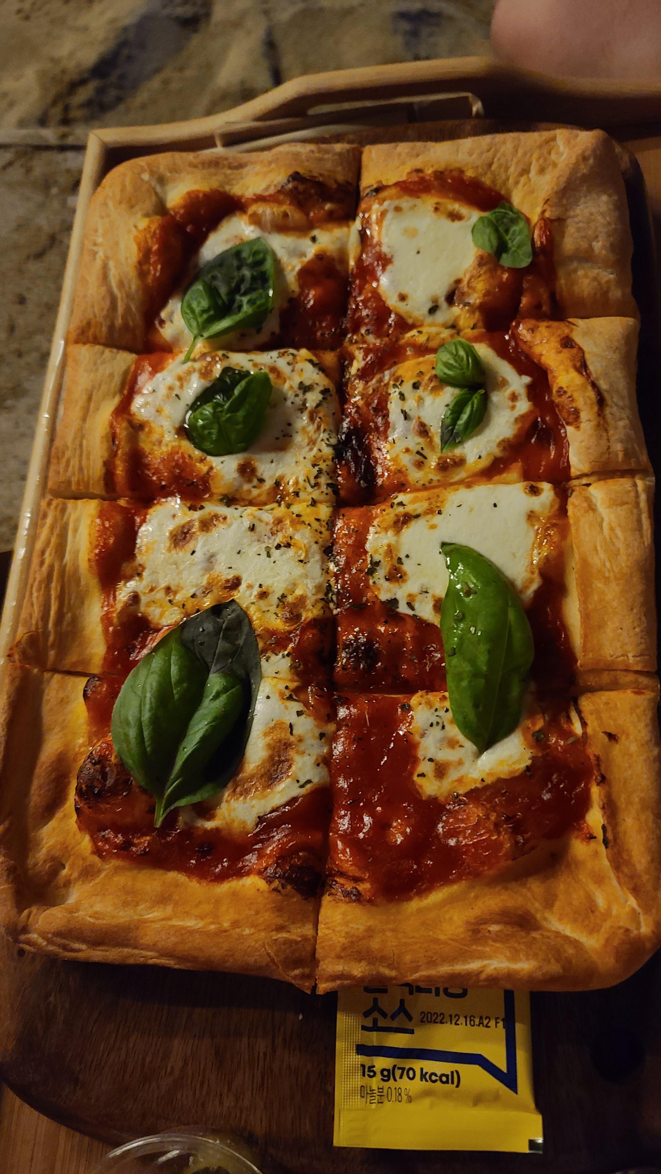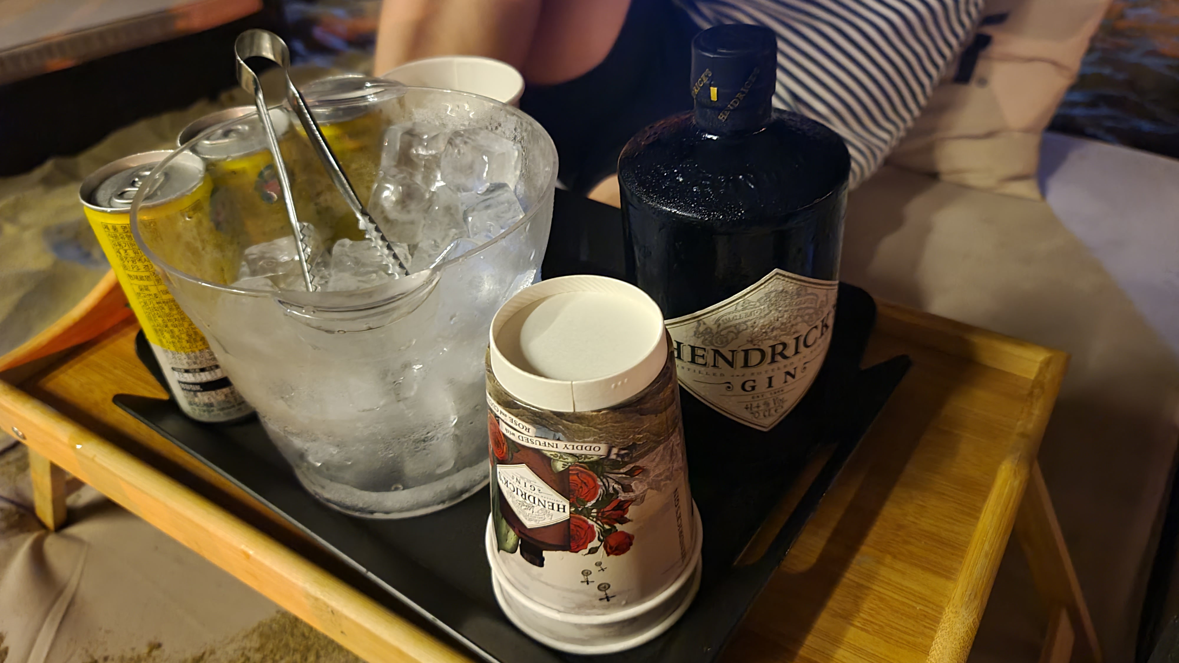 헨드릭스 진 세트와 마르게리따 피자를 주문한 모습이야. 럼, 진, 보드카를 주문하면 얼음과 토닉워커를 세트로 주고 있어