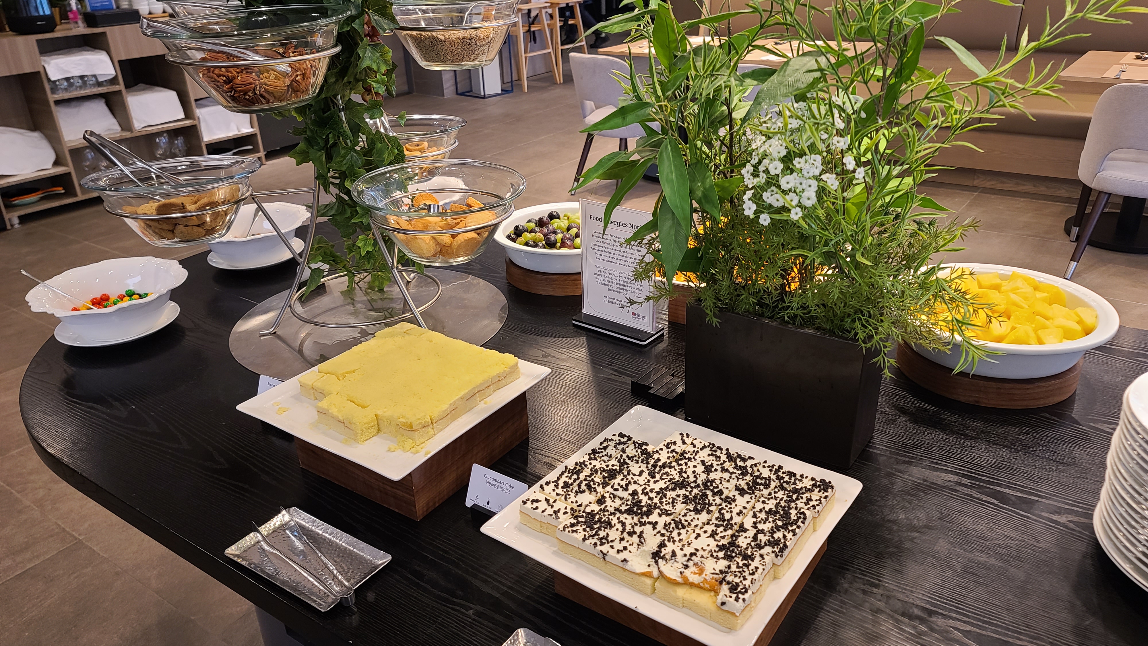 힐튼 가든 인 뷔페는 양재역 근처에 회사원들이 많이 이용하는것이 느껴지며 무난하게 즐길 수 있는 맛과 가격대를 보여주고 있습니다. 주변에 다른 호텔에 비해서 월등하진 않지만 자주 이용하게 될 것 같습니다.