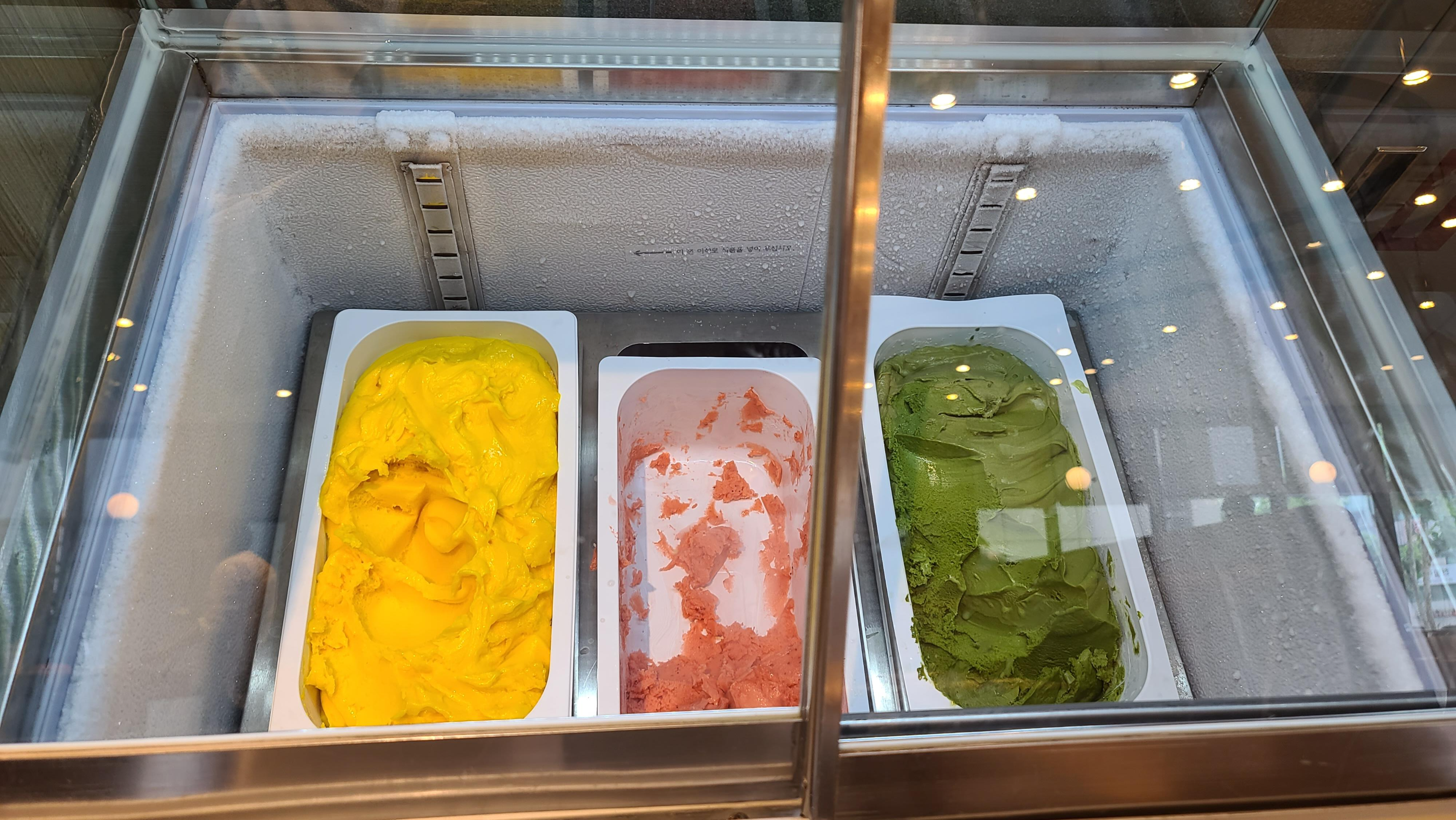 쿠키와 커피로 후식외 아이스크림도 준비되어 있습니다. 망고, 딸기, 녹차 세가지 맛으로 없어진 순서대로 맛있는게 느껴집니다.