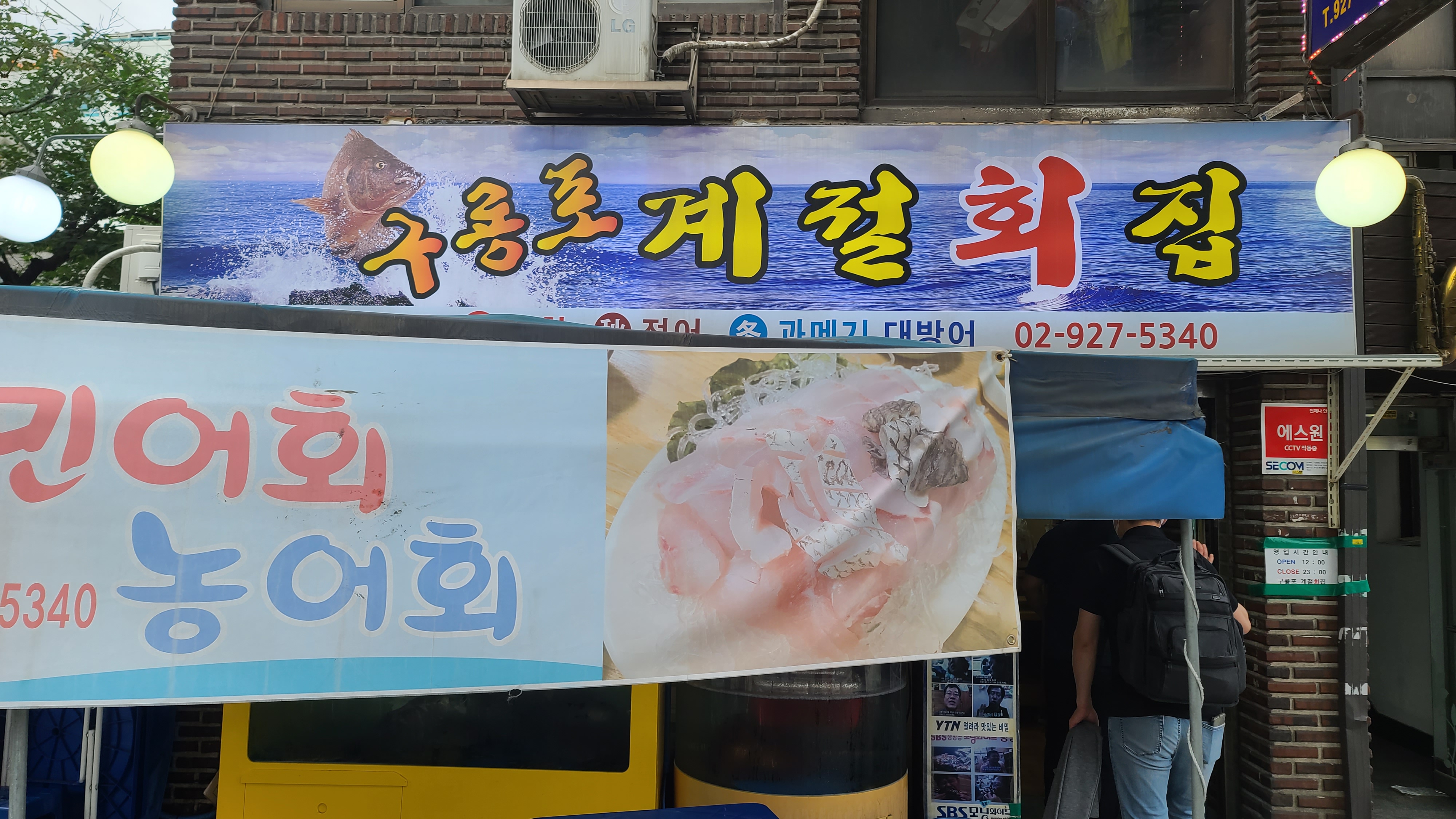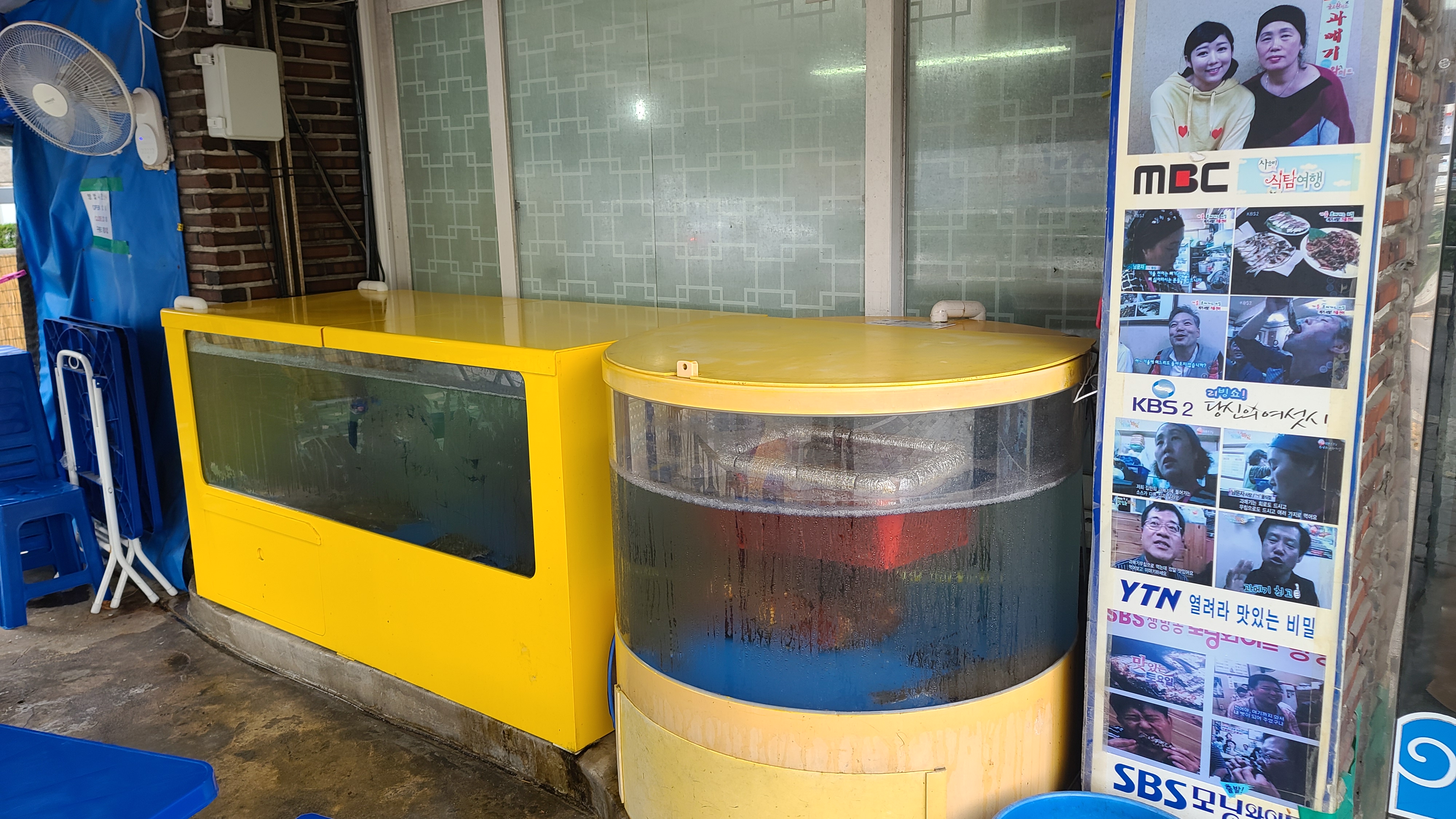 앞에서 살펴보니 수족관은 아담한 사이즈인데 인기가 많은 계절횟집이라고하니 신기하게 느껴집니다. 세로간판에는 지상파 및 다양한 방송에서 맛집으로 소개되었다고 나와있어 더욱 궁금증을 유발하고 있습니다.