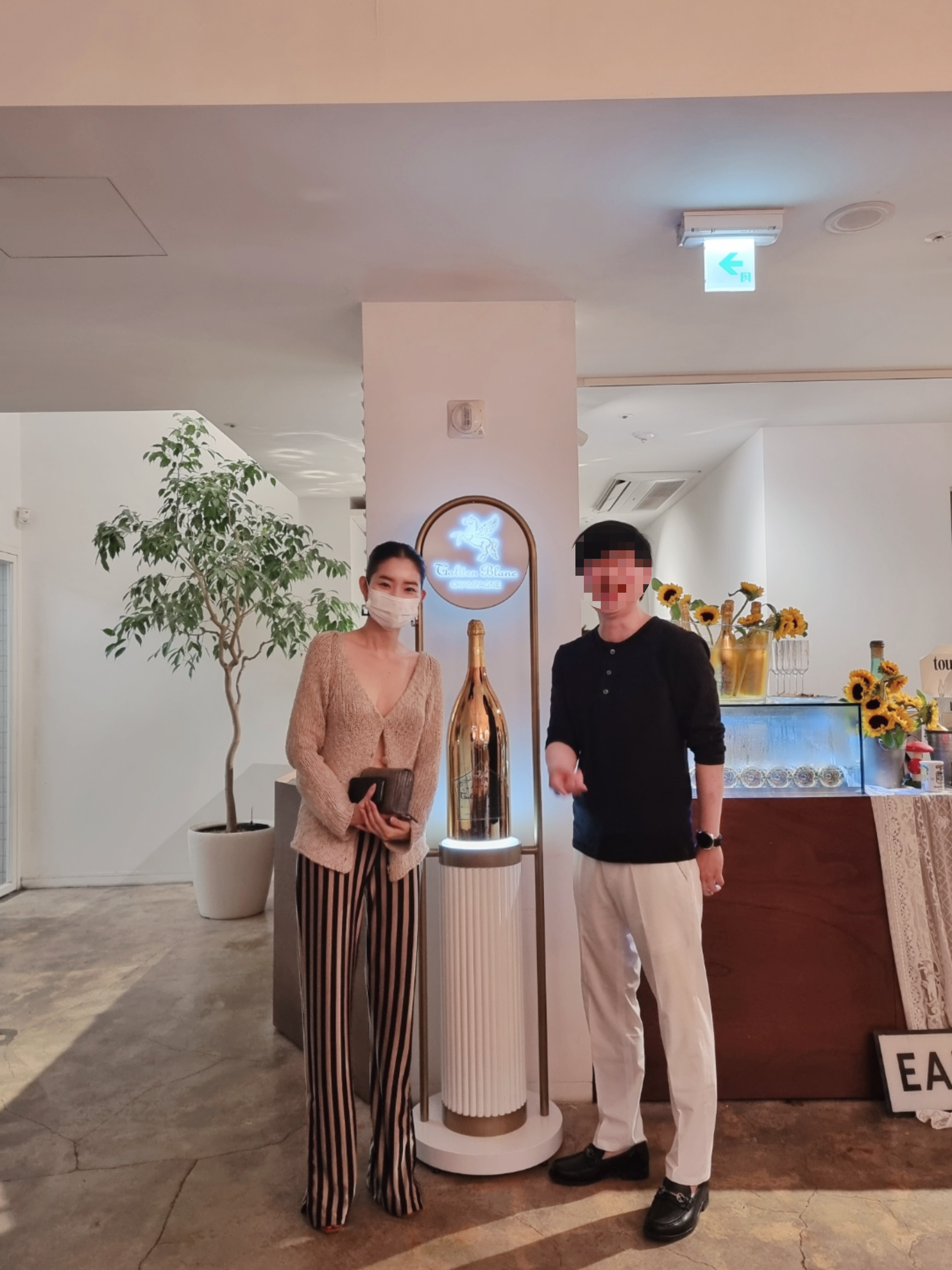 골드샴페인 매우 큰 모형도 파티장 가장 눈에 들어오는 정면에 세워져 있어 여러사람들이 포토존으로 활용하고 저마다 사진을 찍어댔어. Golden Blanc 골든블랑 샴페인은 연예계 쪽으로 홍보를 자주하는지 요즘 정말 자주 눈에 들어오는 것 같아