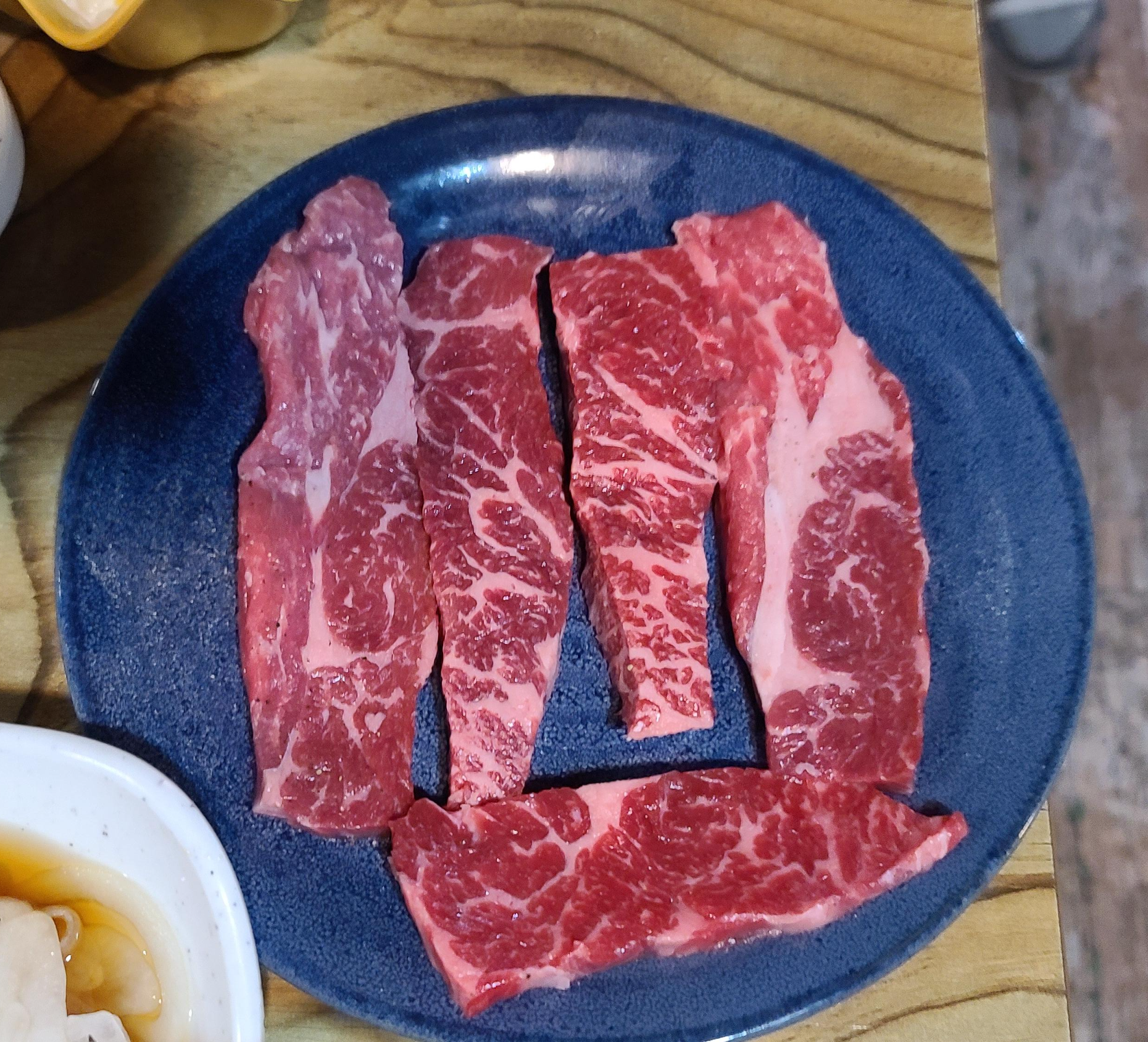 진갈비살을 맛있게 먹고 한단계 위인 꽃갈비살도 주문해서 먹어봅니다. 역시나 블랙앵거스 답지 않게 상당히 선명한 빛깔과 지방기 그리고 촉촉함을 보여줍니다.